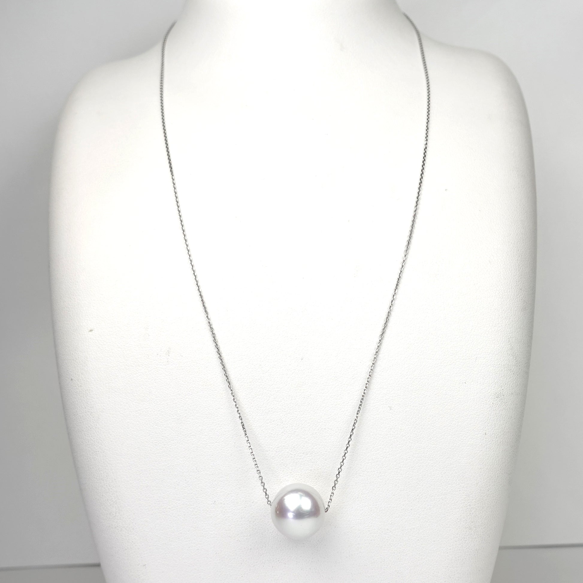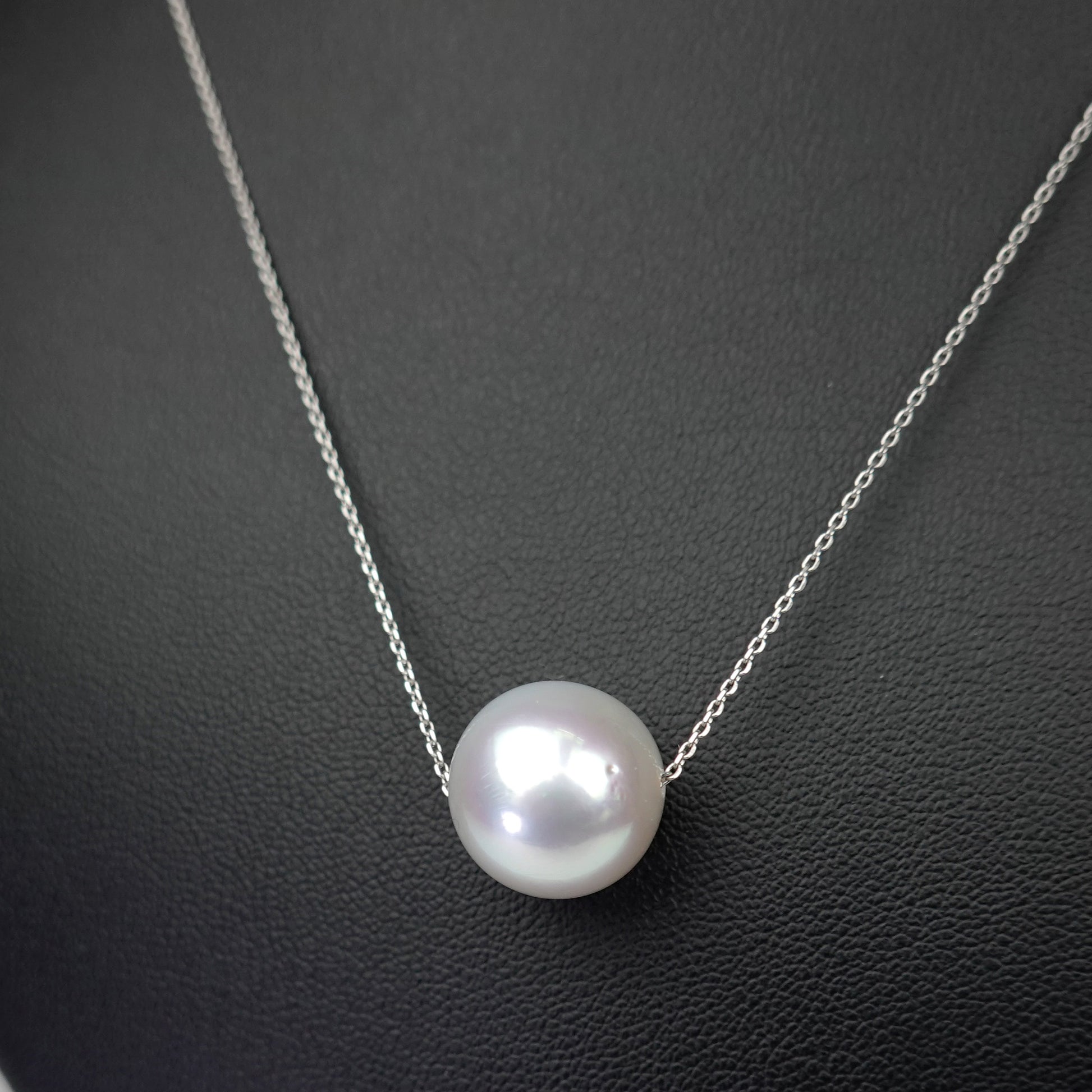色・照りが美しい高品質の白蝶真珠(13.8mm)シンプルデザイン