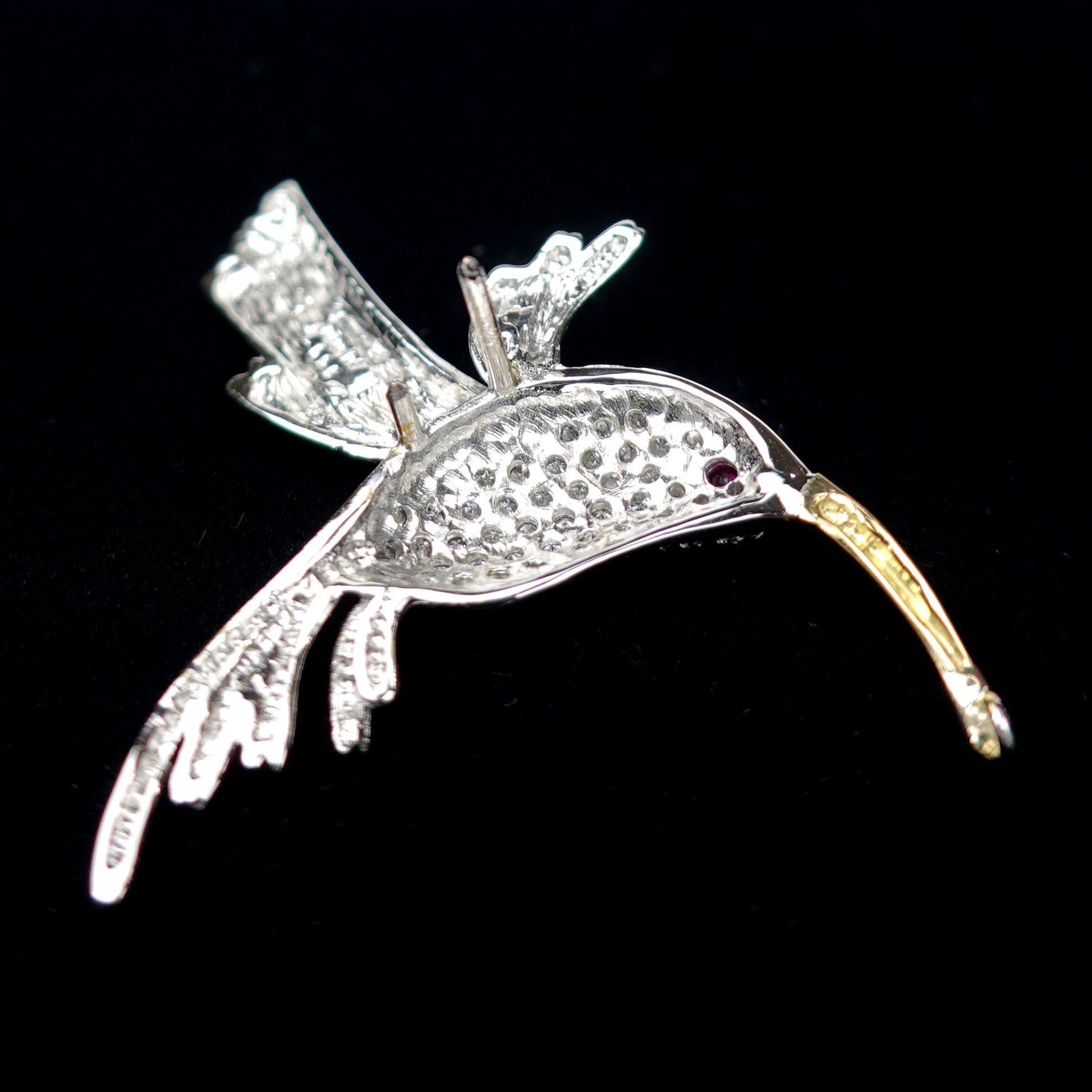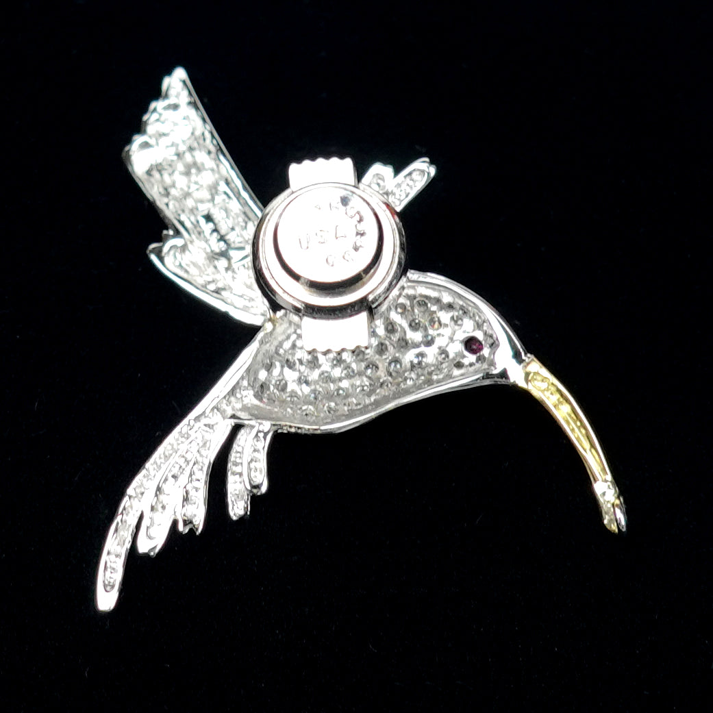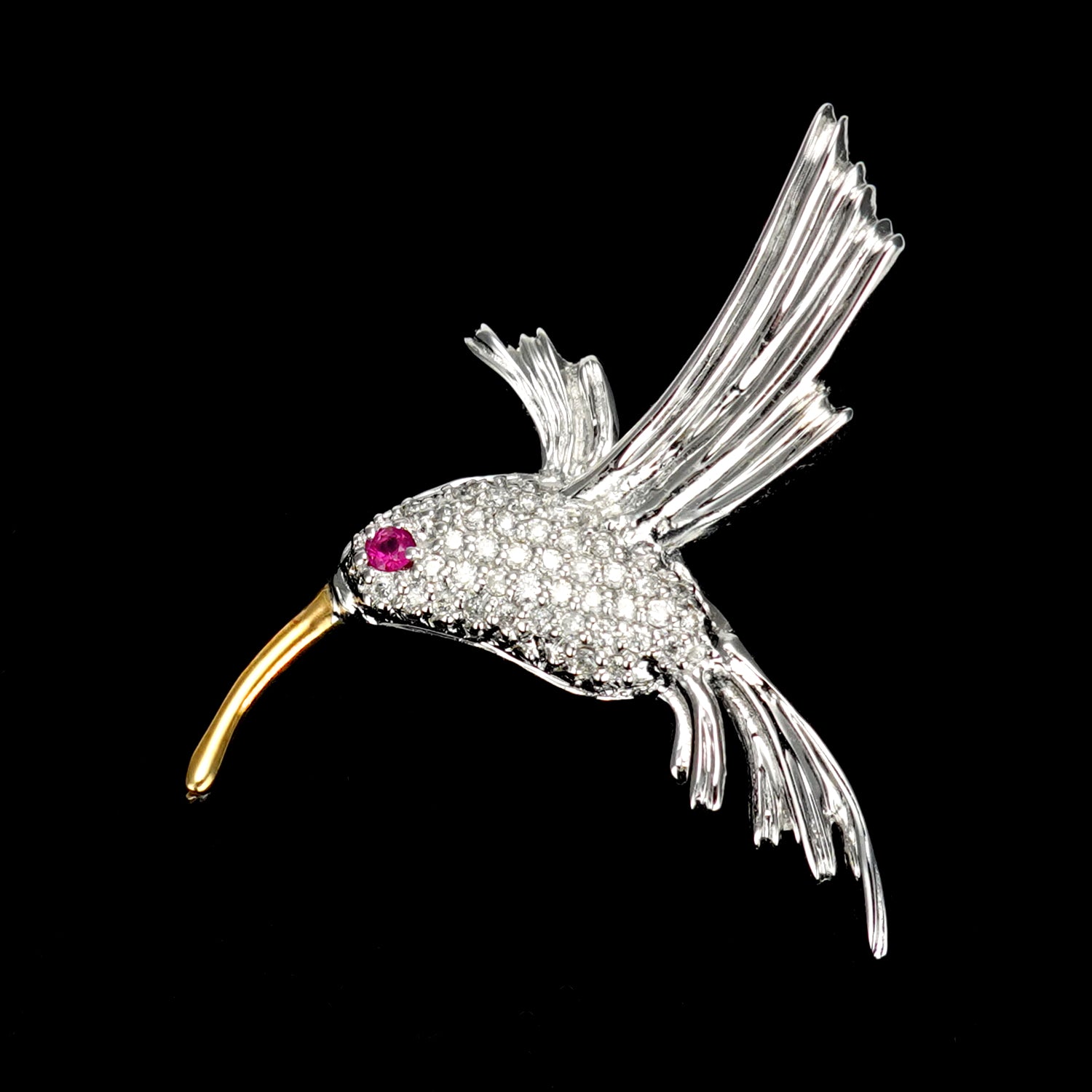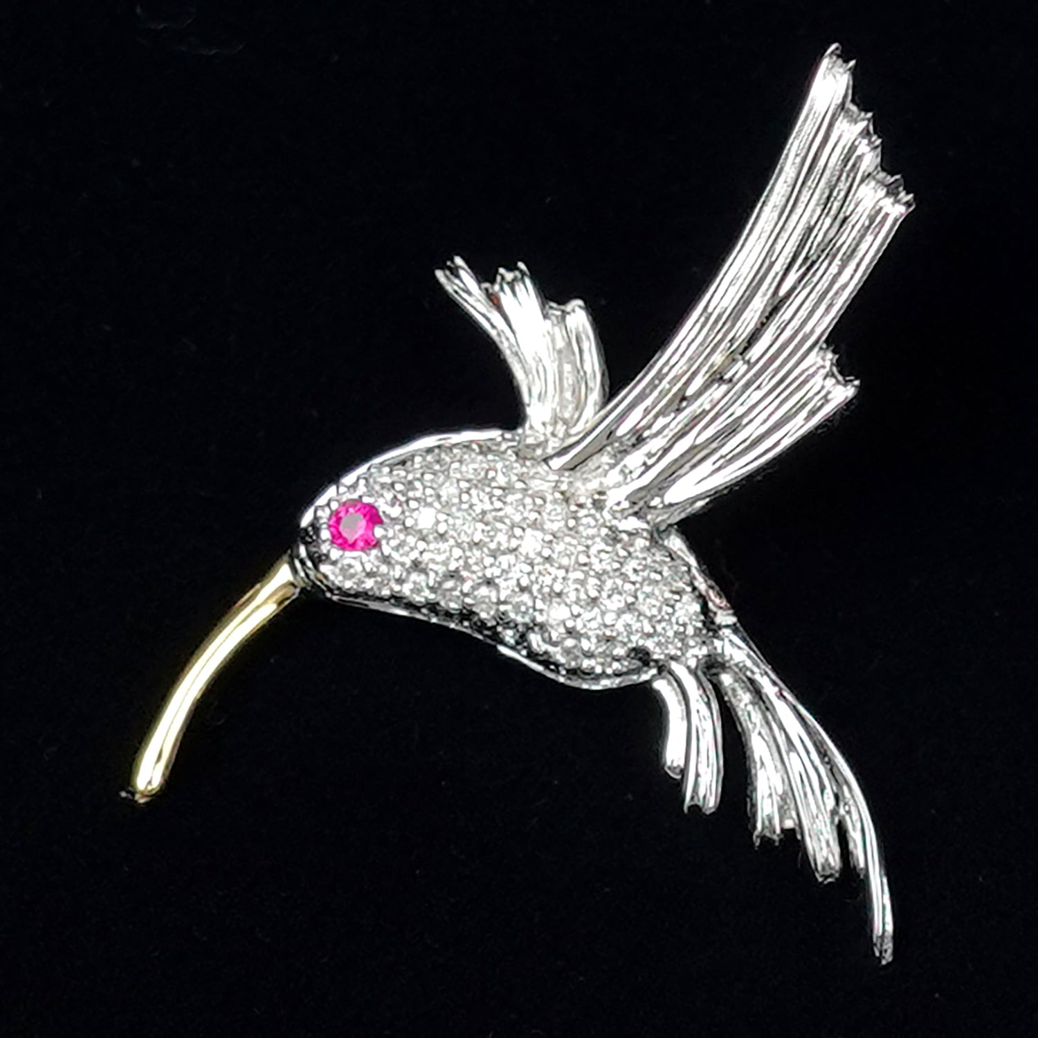 ダイヤモンドブローチ(ラペルピン) ルビーの目の可愛いハチドリの高級なブローチ BR(Ra)-D-504-1-K18WG