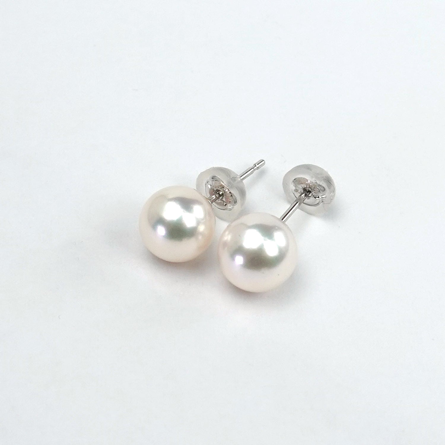パールピアス シルバーホワイト系の中にピンク系の色が見られる照りの良いパール PE-P-6.8mm-K14WG-2025-アコヤ真珠