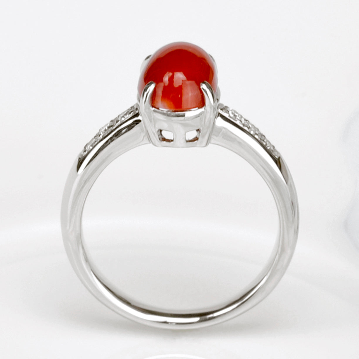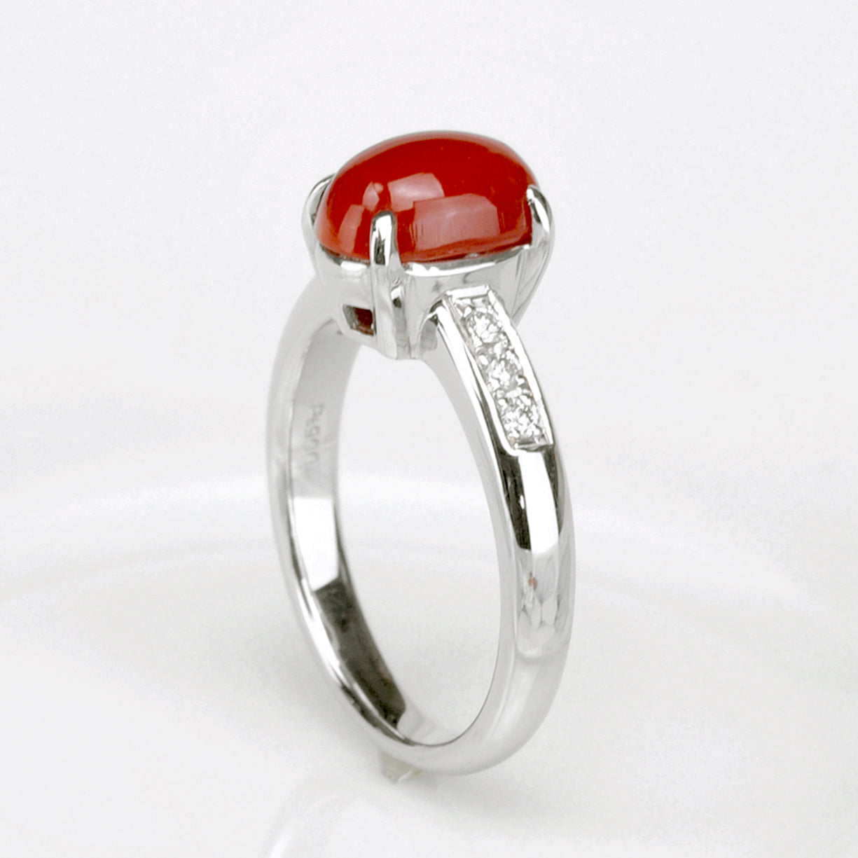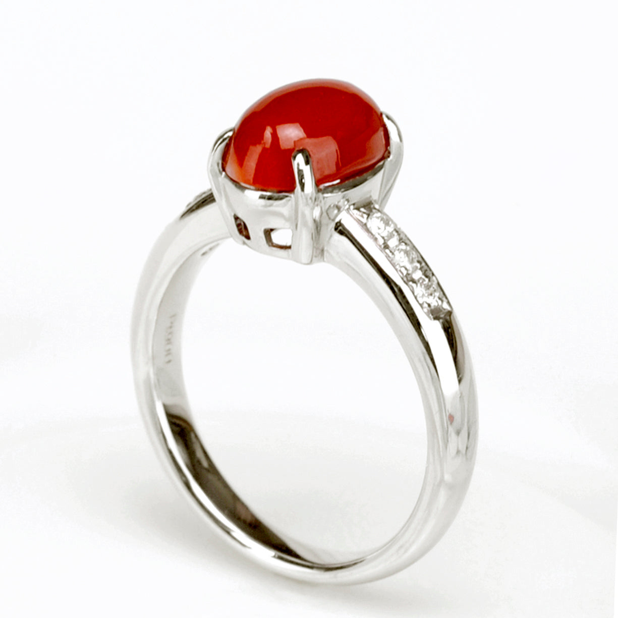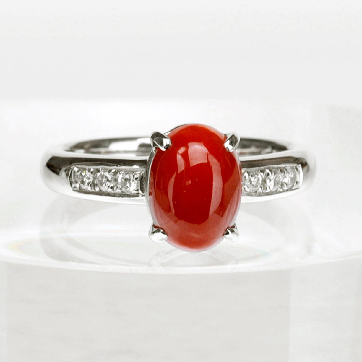 色ムラが少なく濃い赤色の高級サンゴを使用したリング