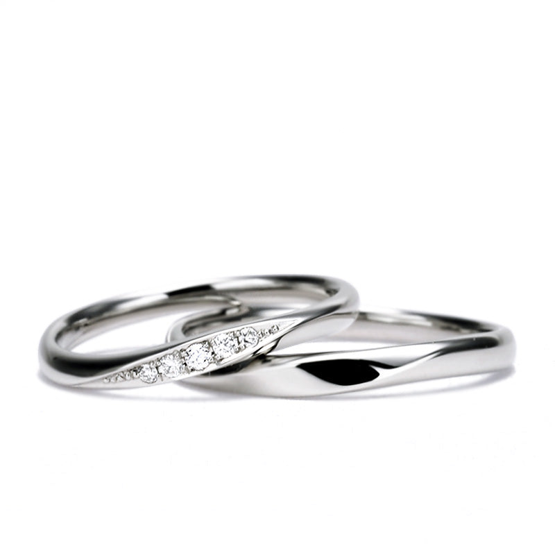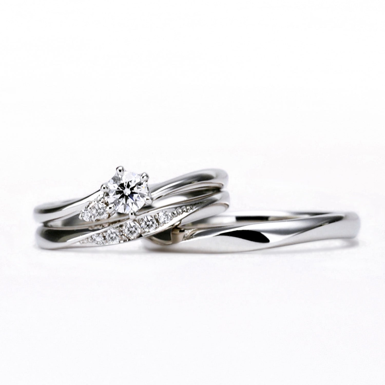ブライダルリングセット 緩やかなウェーブデザインで重ね着けすると更に美しく(ハードプラチナ製)BsHaP01n-0.20ct,F