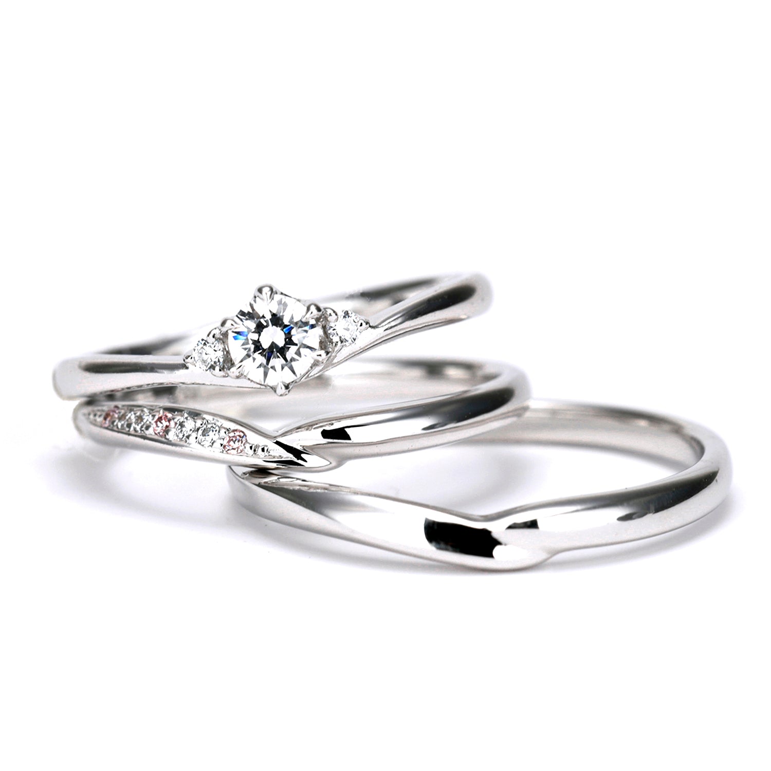 ブライダルリングセット 緩やかなV字の婚約指輪・結婚指輪セット (ピンクダイヤを3個使用) 重ね着けでさらに美しく BsHaP02n04p-0.25ct,D