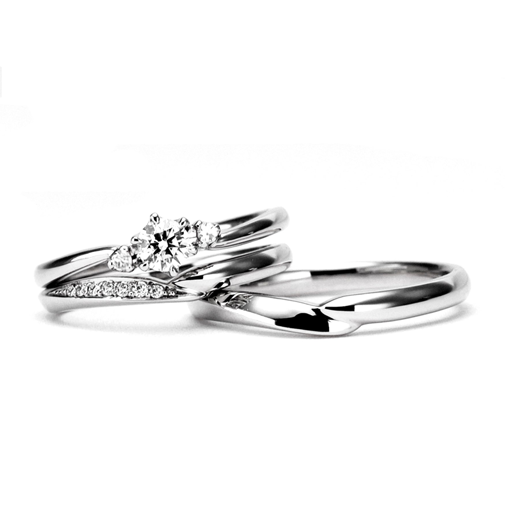 ブライダルリングセット 直線と緩やかなV字が融合した絶妙なデザイン ハードプラチナ製ブライダルリングセット 重ね着けでさらに美しく BsHaP04n-0.25,D