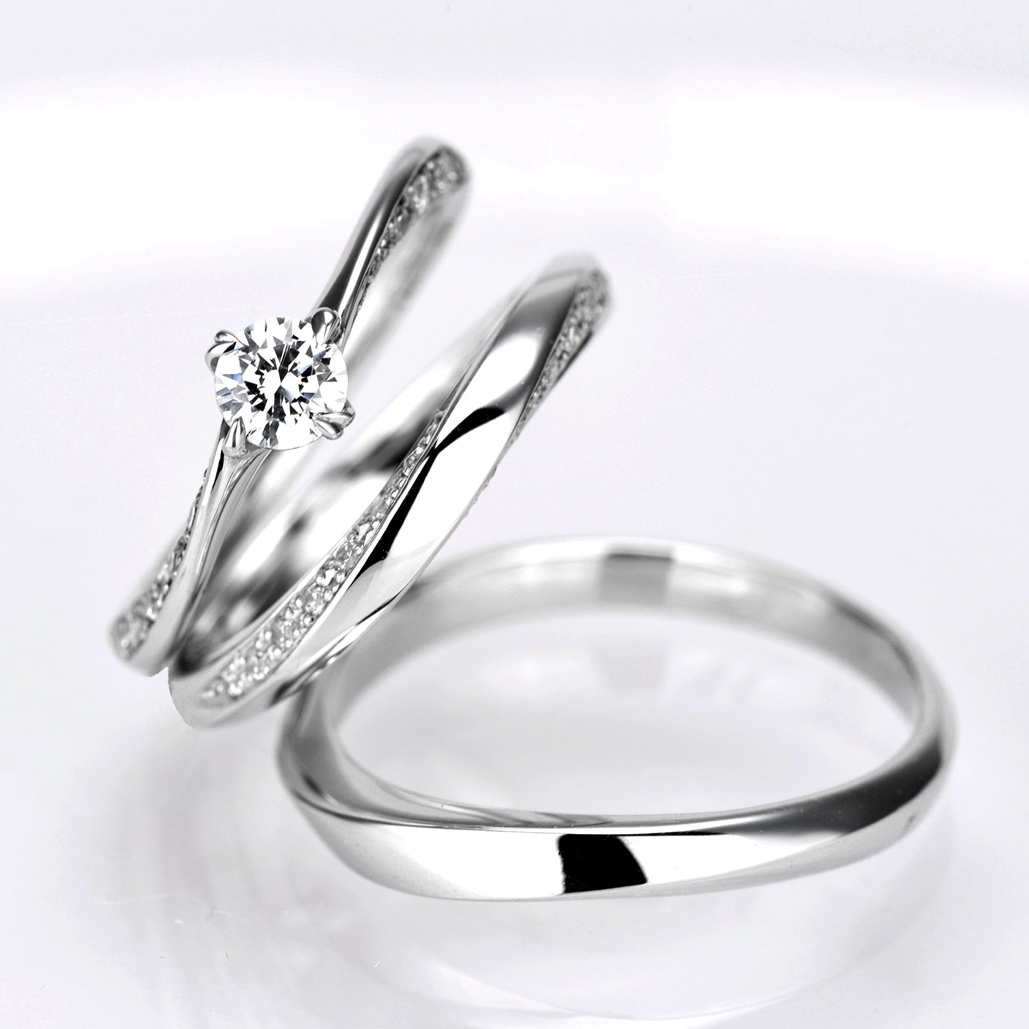 結婚指輪の洗練されたウェーブデザインが大人気。