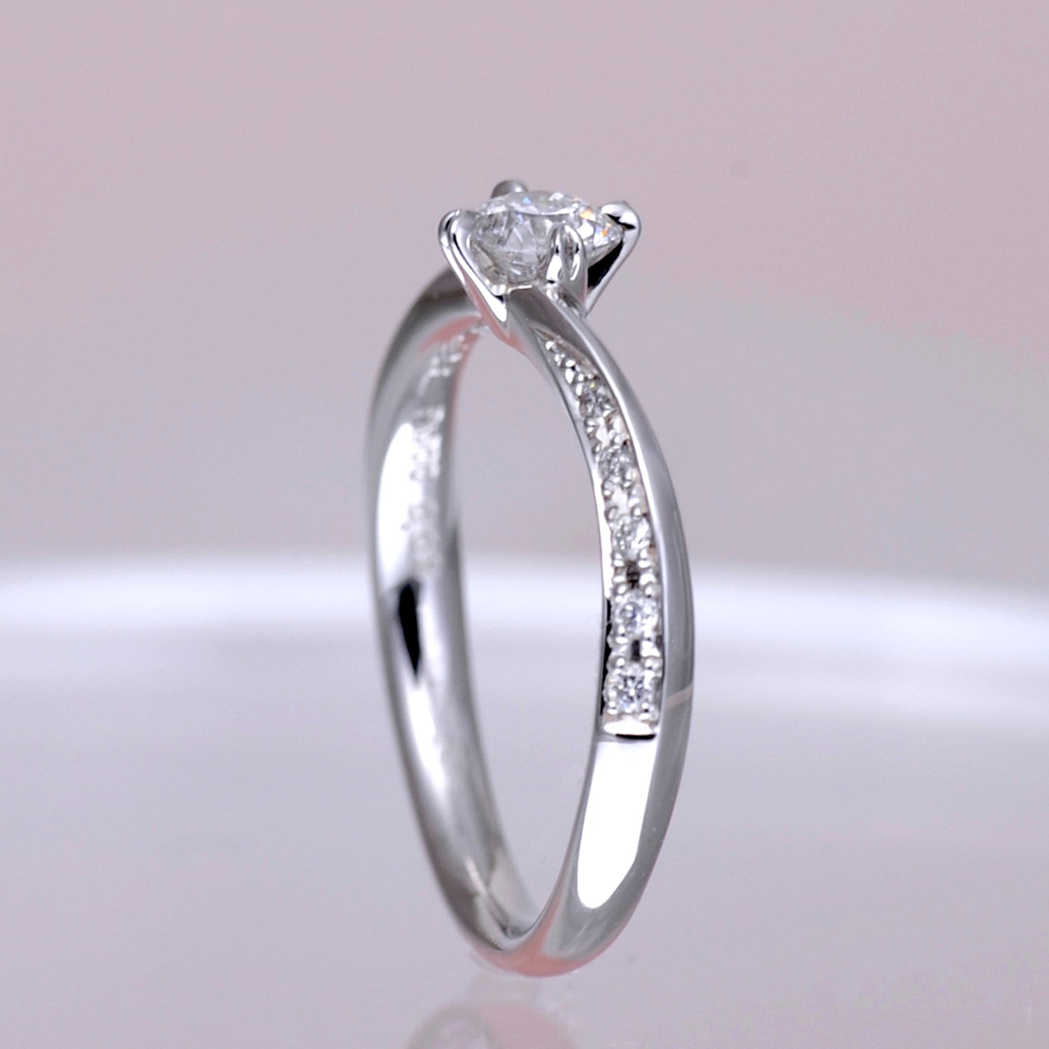 メインダイヤモンド:0.20カラット・Fカラー・VS2・3EX・H&C(中央宝石研究所 鑑定書付)
