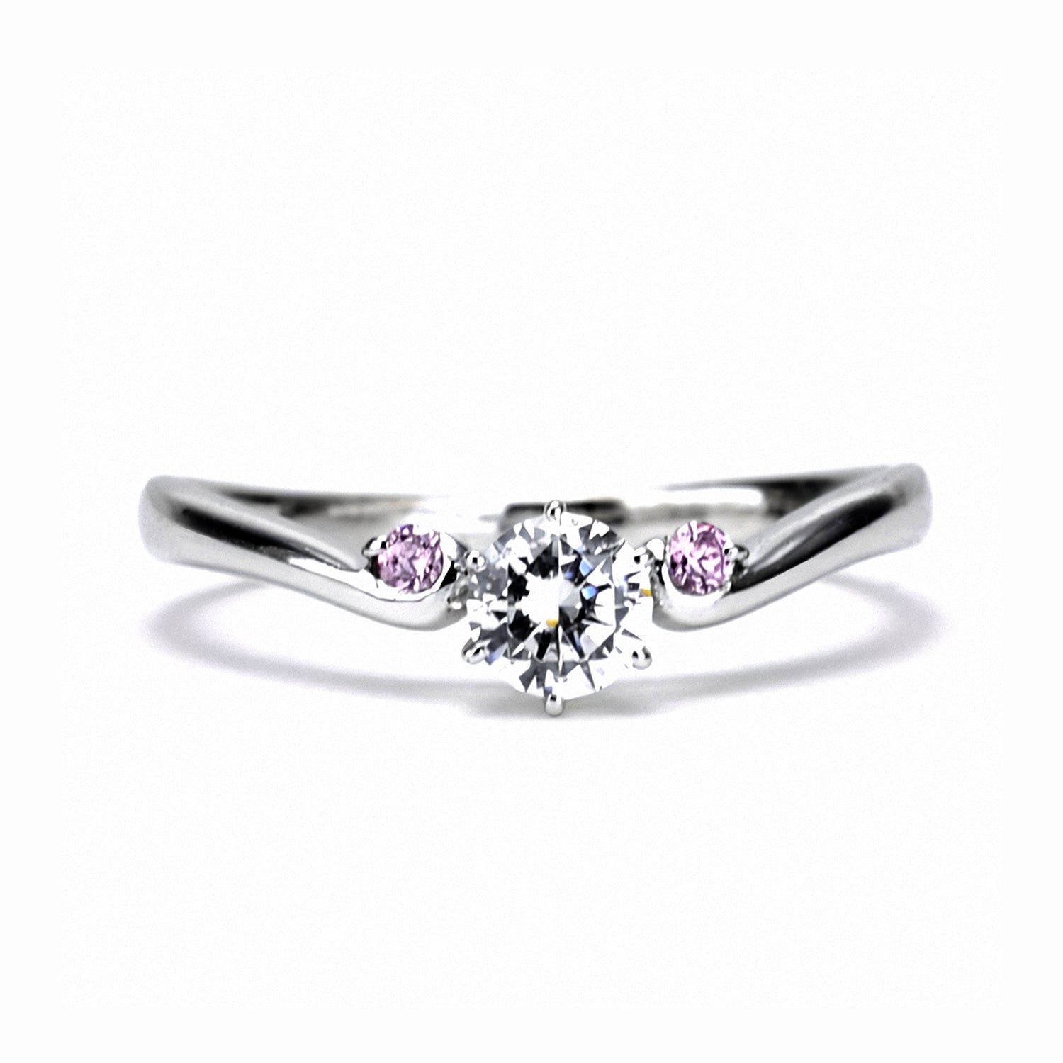 婚約指輪 天然ピンクダイヤモンドを使用 ウェーブとV字が融合した優しいデザインのエンゲージリング EK1026p-0.20,D,VS1,3EX,HC-Pt
