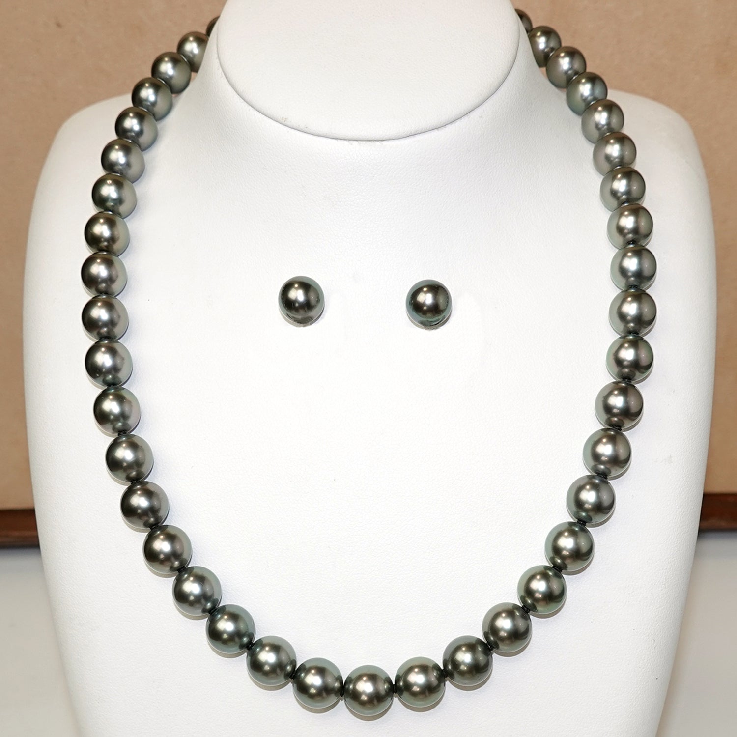 黒蝶真珠ネックレス+イヤリング(ピアス)セット Black-Lip花珠ピーコックグリーン KC-N+PE