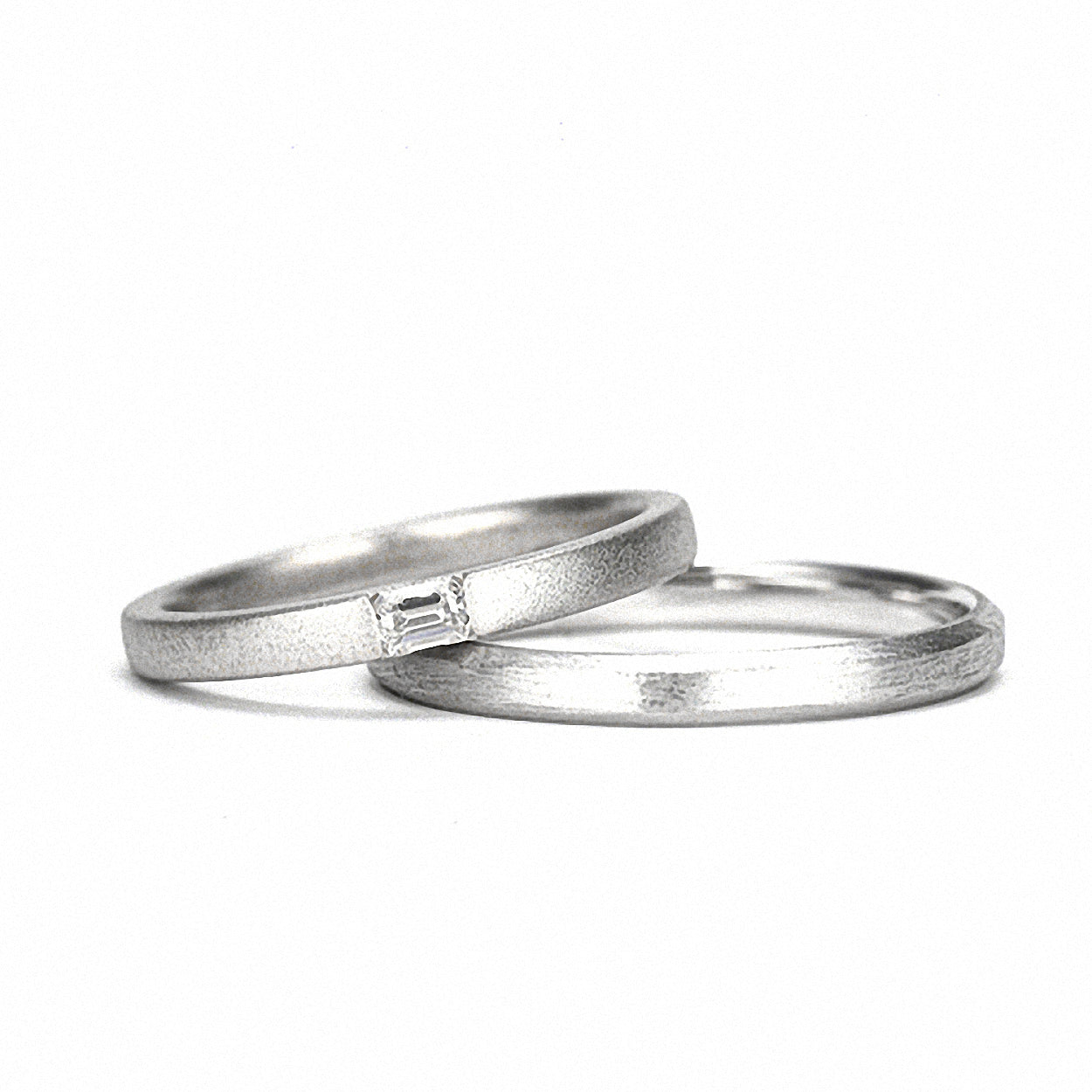 つや消し仕上げで落ち着いた印象ですが、エメラルドカットダイヤモンドがさりげなくエレガントさを演出します。
