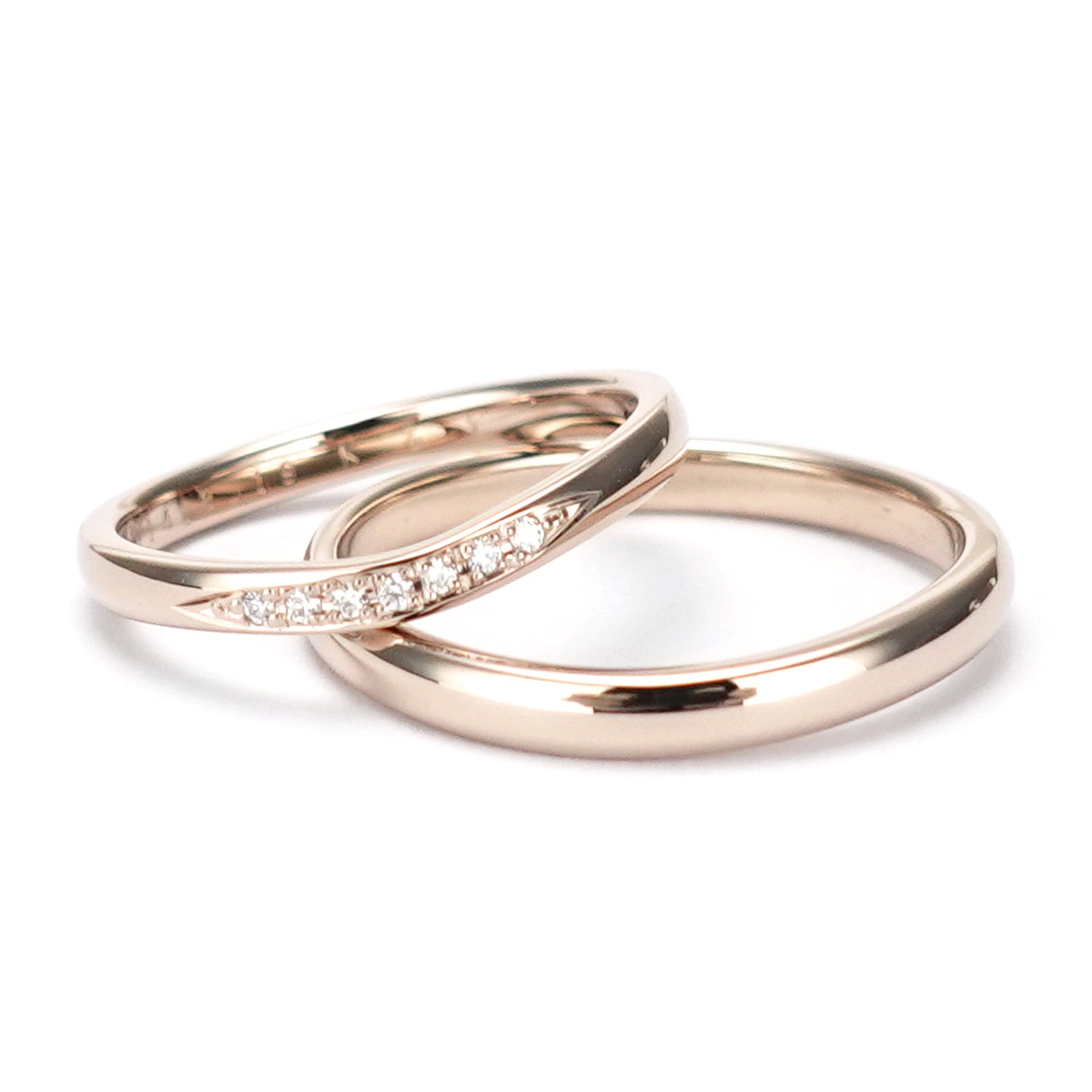 【鍛造】結婚指輪ペア 肌色に馴染む淡い色のピンクゴールド 変形やキズに非常に強い鍛造製法の指輪 MpKK82-20D7-K18CLG-KK81-25-K18CLG