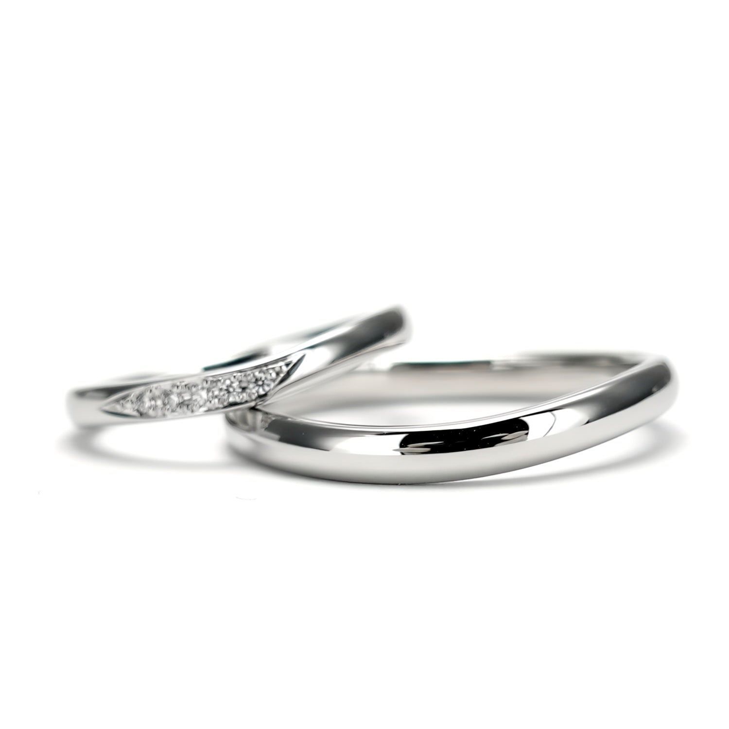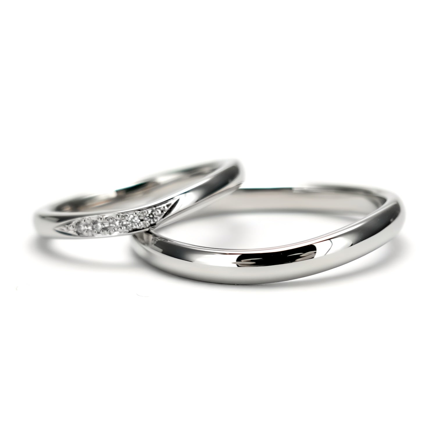 通常、鍛造製品は曲線を作るのが難しく直線的なデザインが主流ですが、女性用は緩やかなU字の優しいデザインで、指がスマートに見えます。男性用は緩やかなウェーブデザインです。