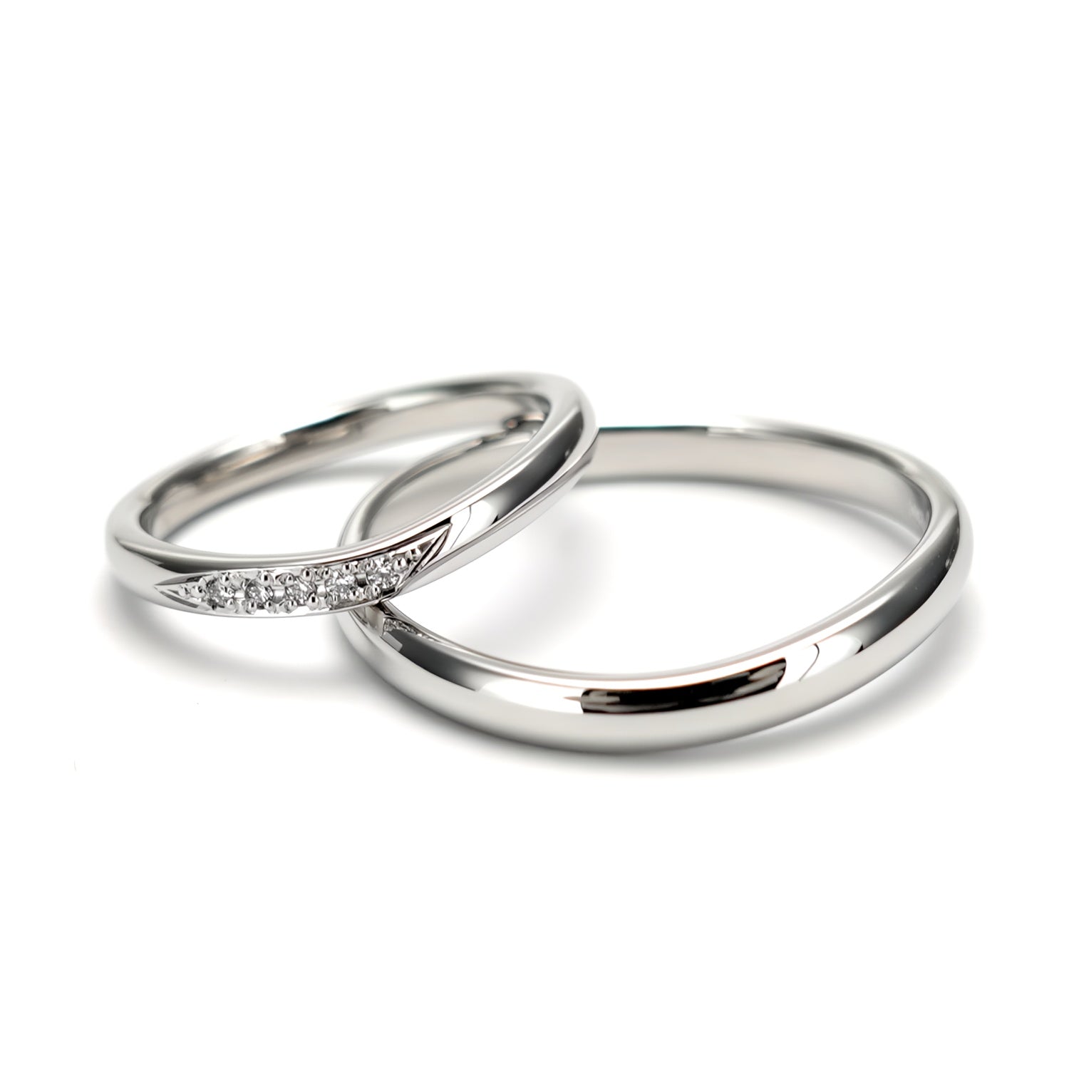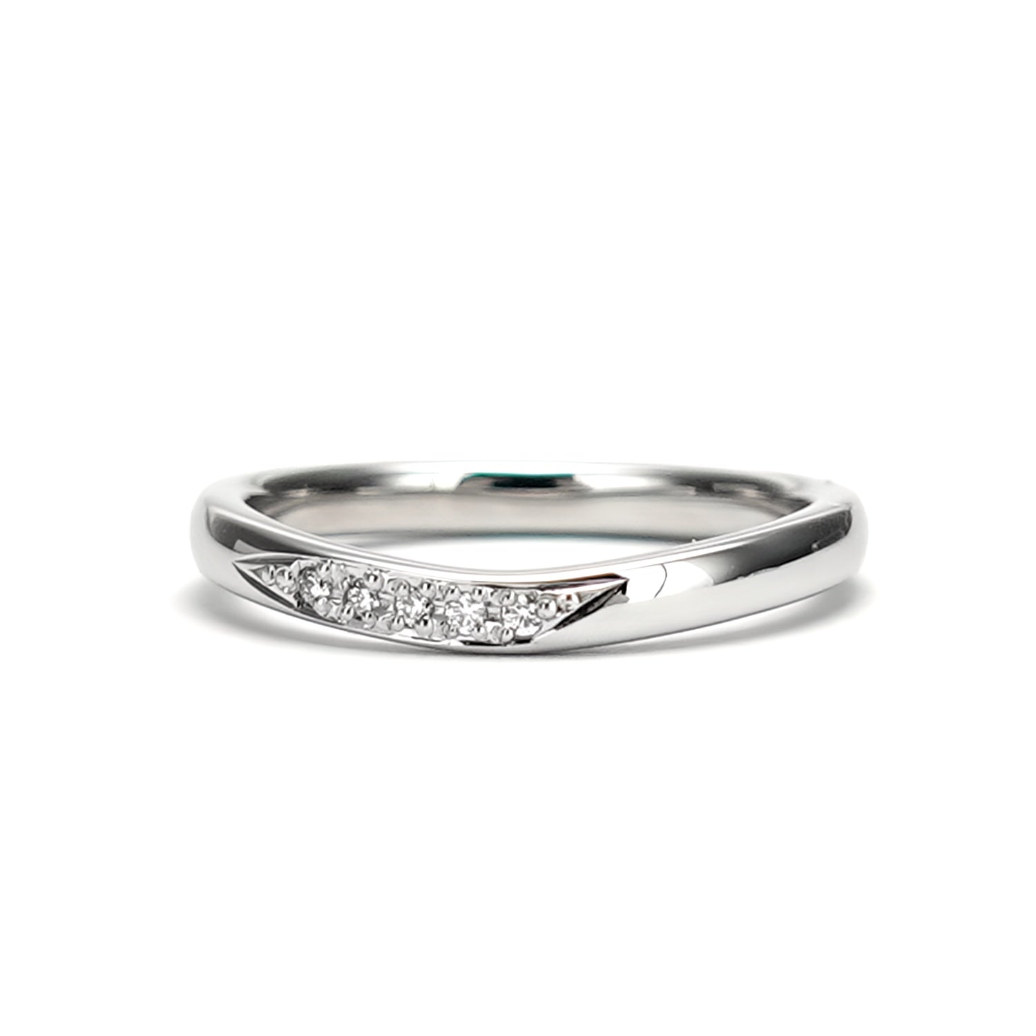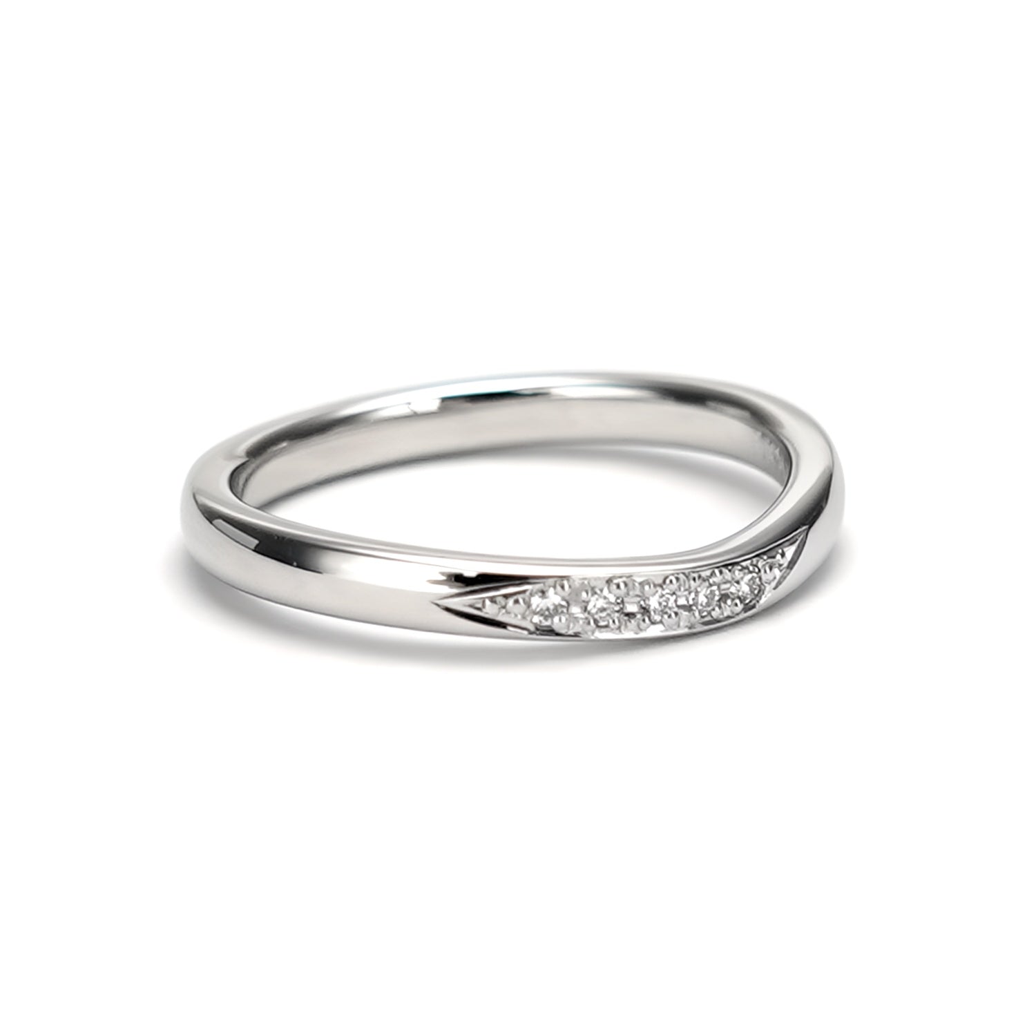 女性用はリング中央から左へ高品質H&C(ハートアンドキューピッド)メレダイヤモンドが5個入っております。