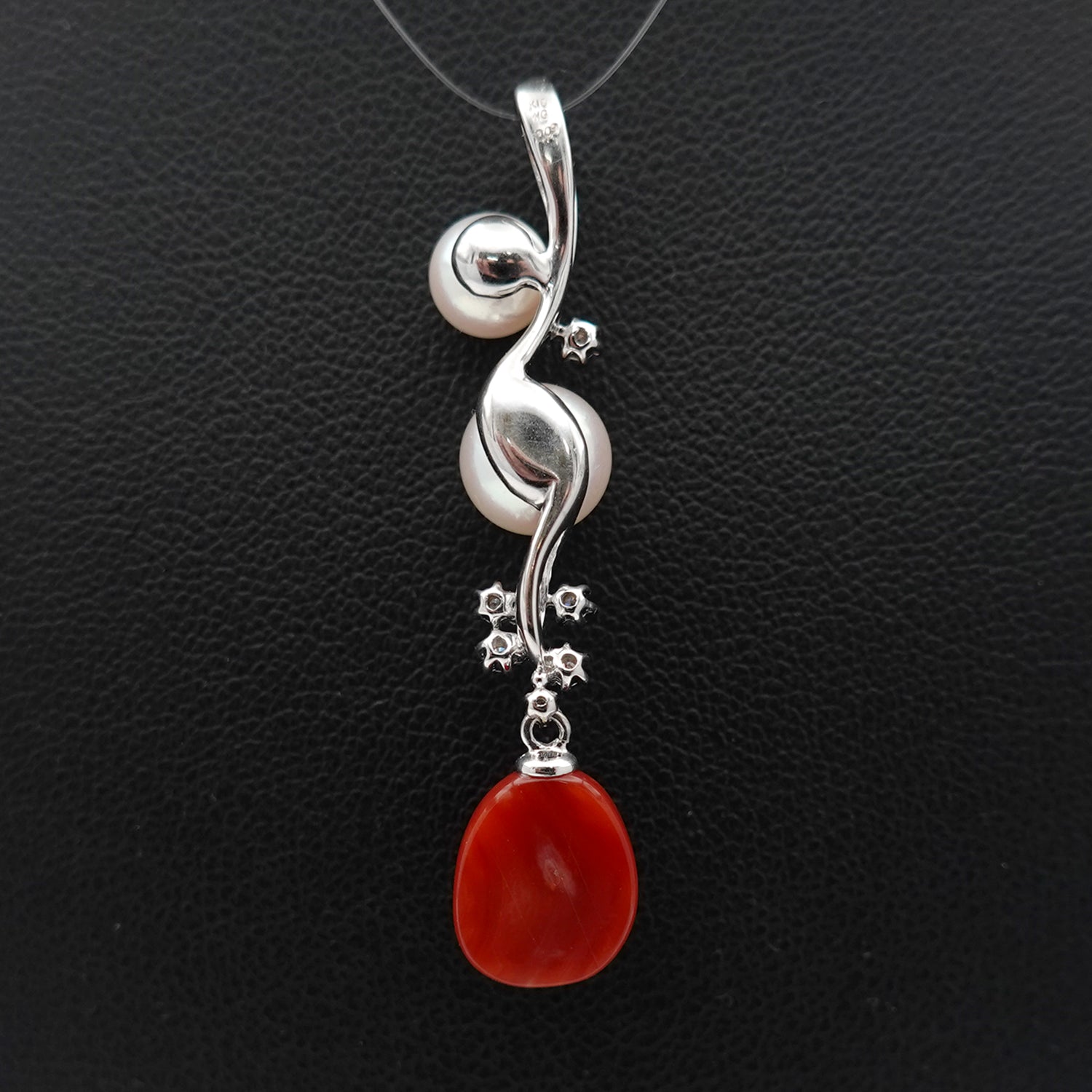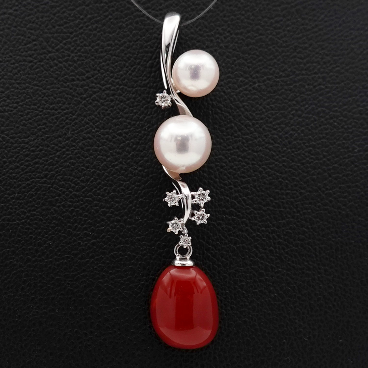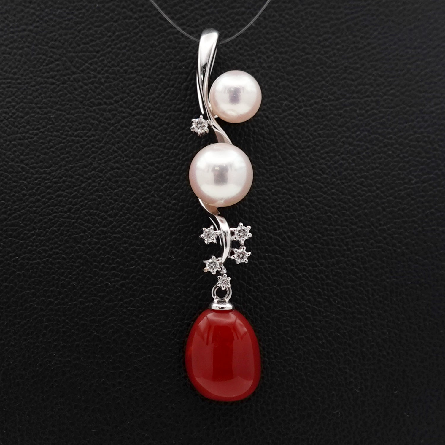 高品質血赤珊瑚と花珠クラスの色照りの良いパールを使った高級感あふれるオシャレなデザインのペンダント