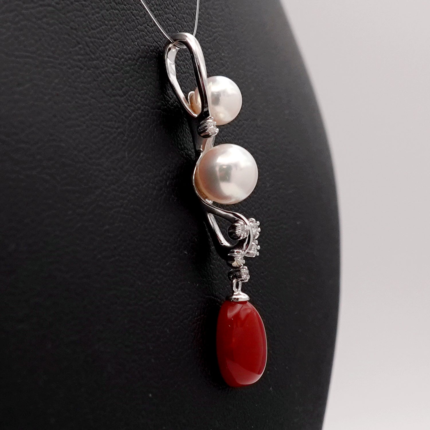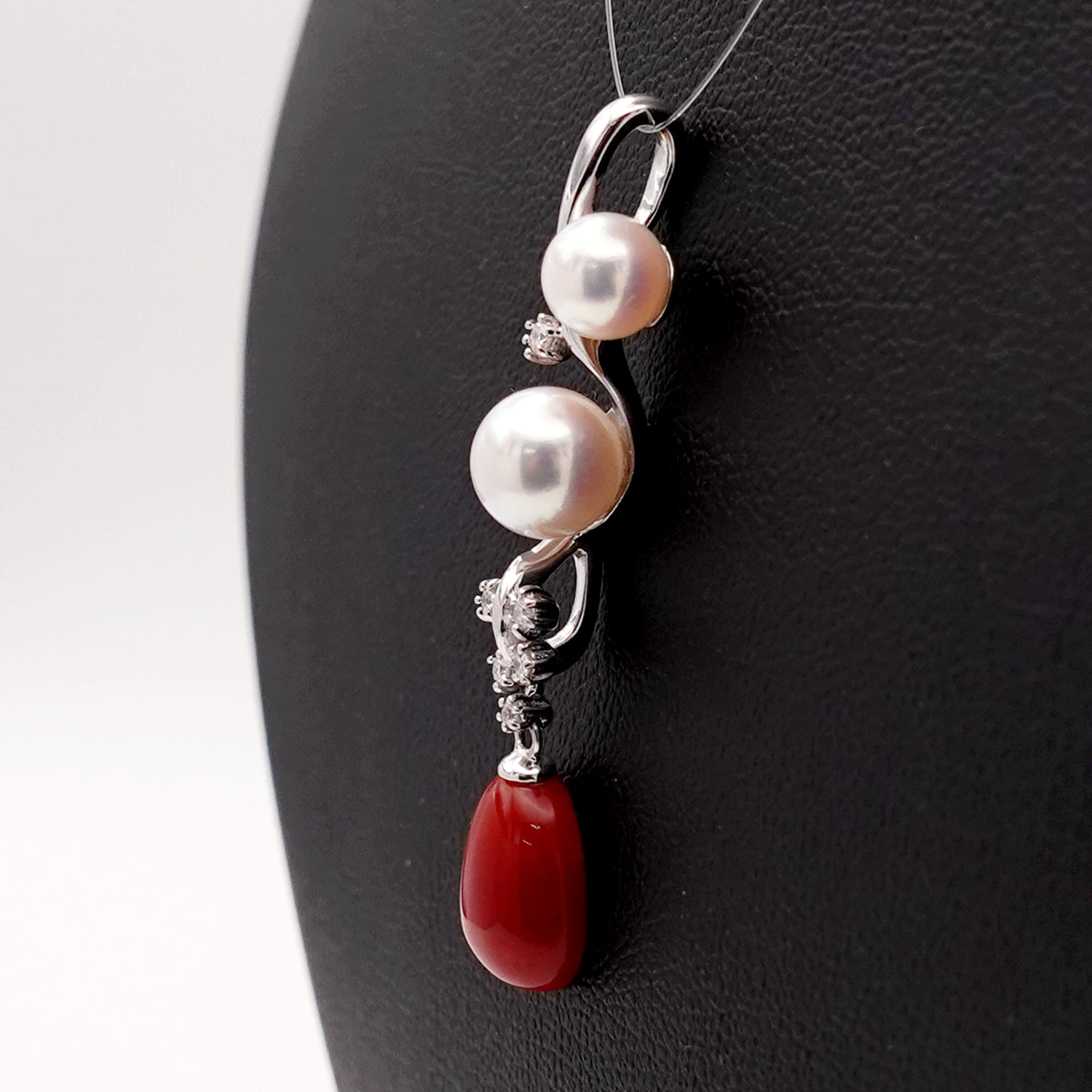 血赤珊瑚/パールペンダントトップ 高品質血赤珊瑚と花珠クラスのパールを使った高級感あふれるオシャレなペンダント-K18WG