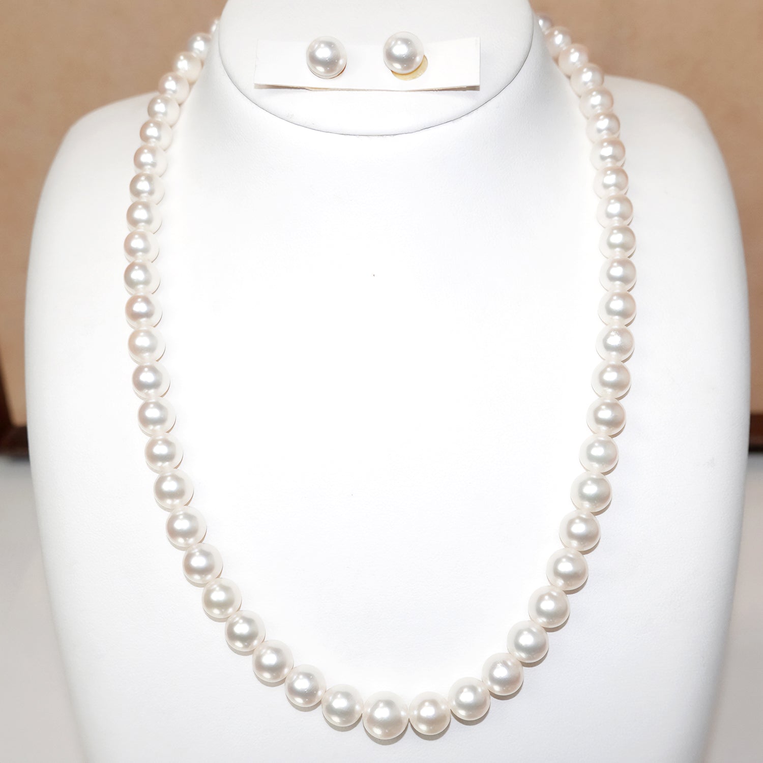 パールネックレス+イヤリング(ピアス)セット アコヤ真珠では珍しいグラデーションのネックレス PNE6.5~8.8-TG08072103