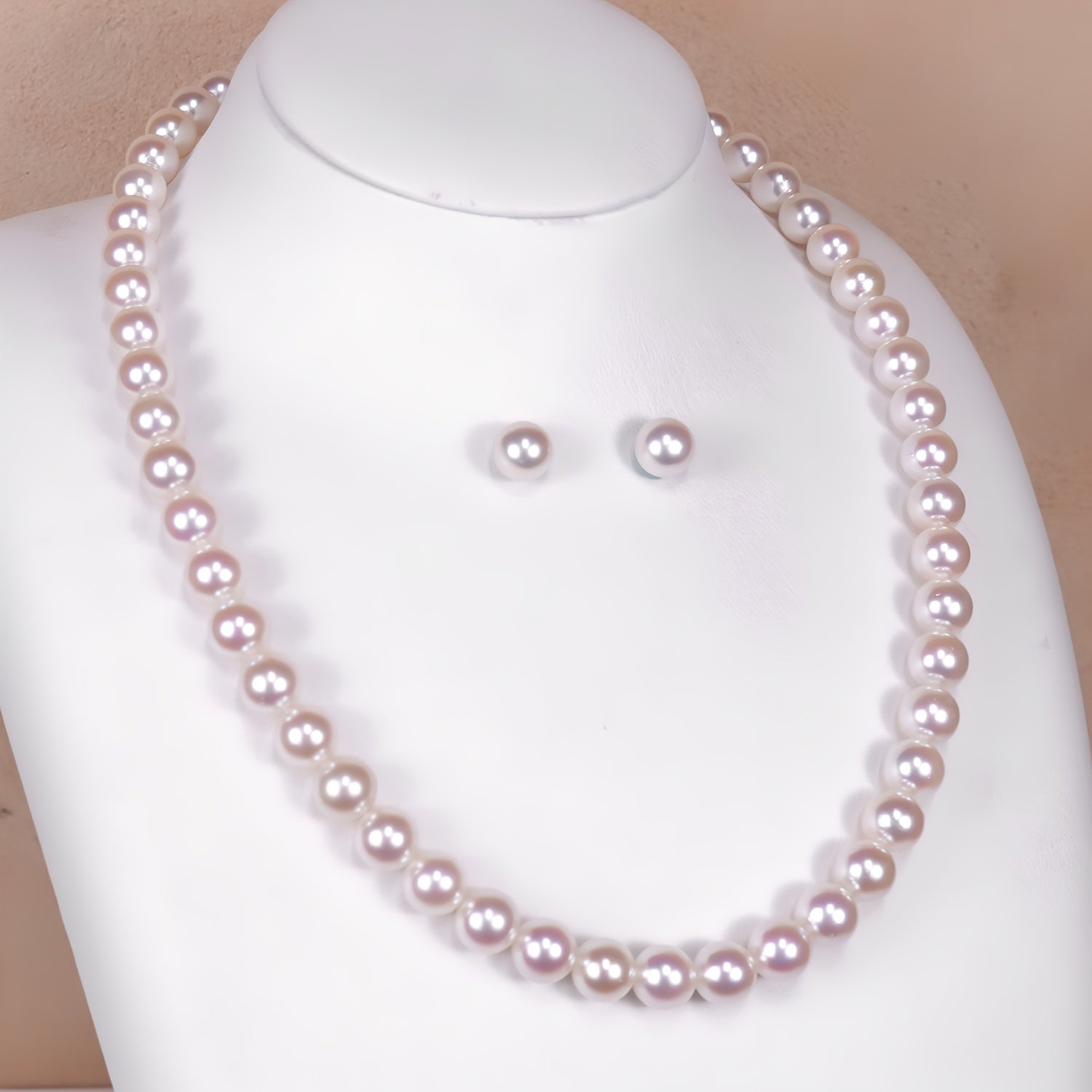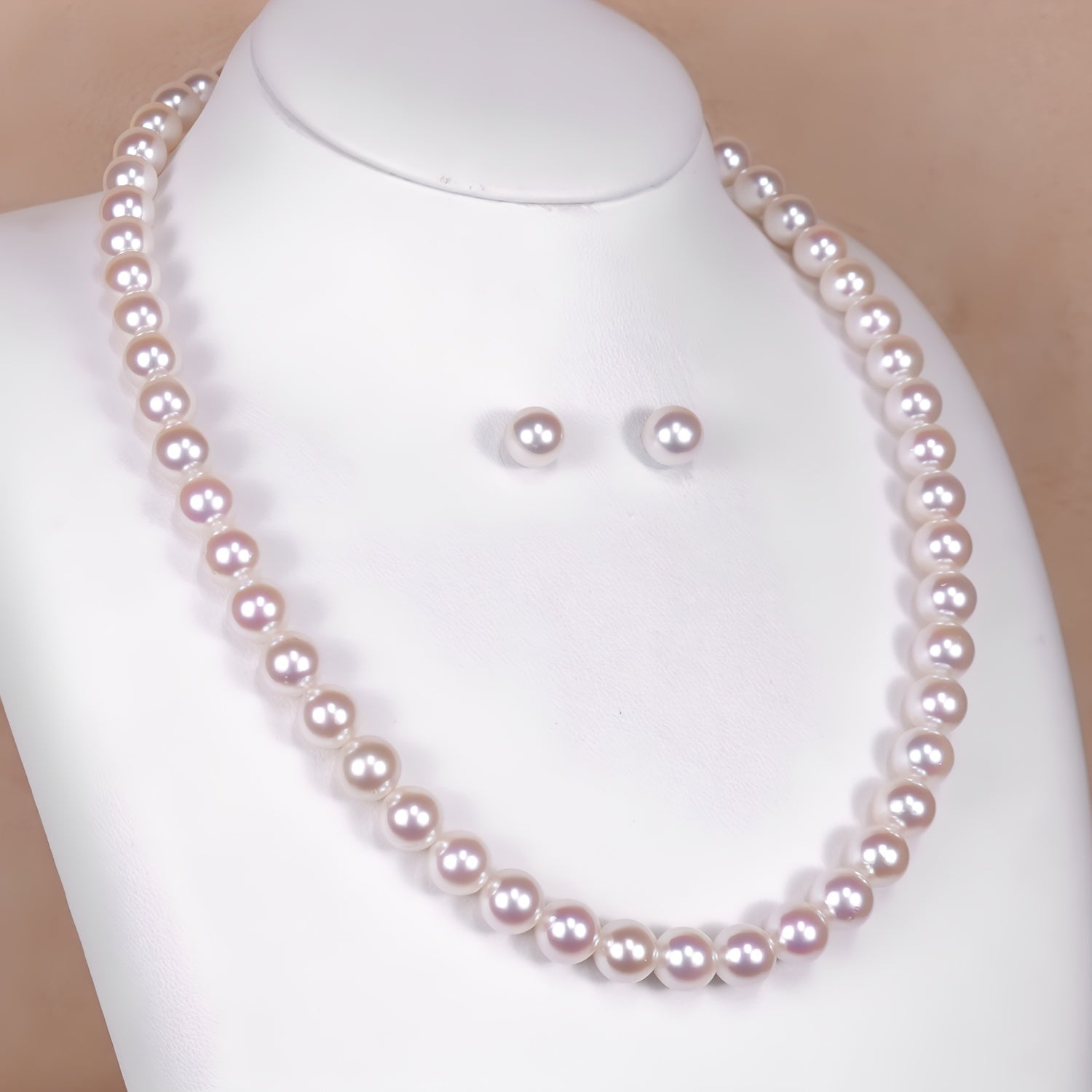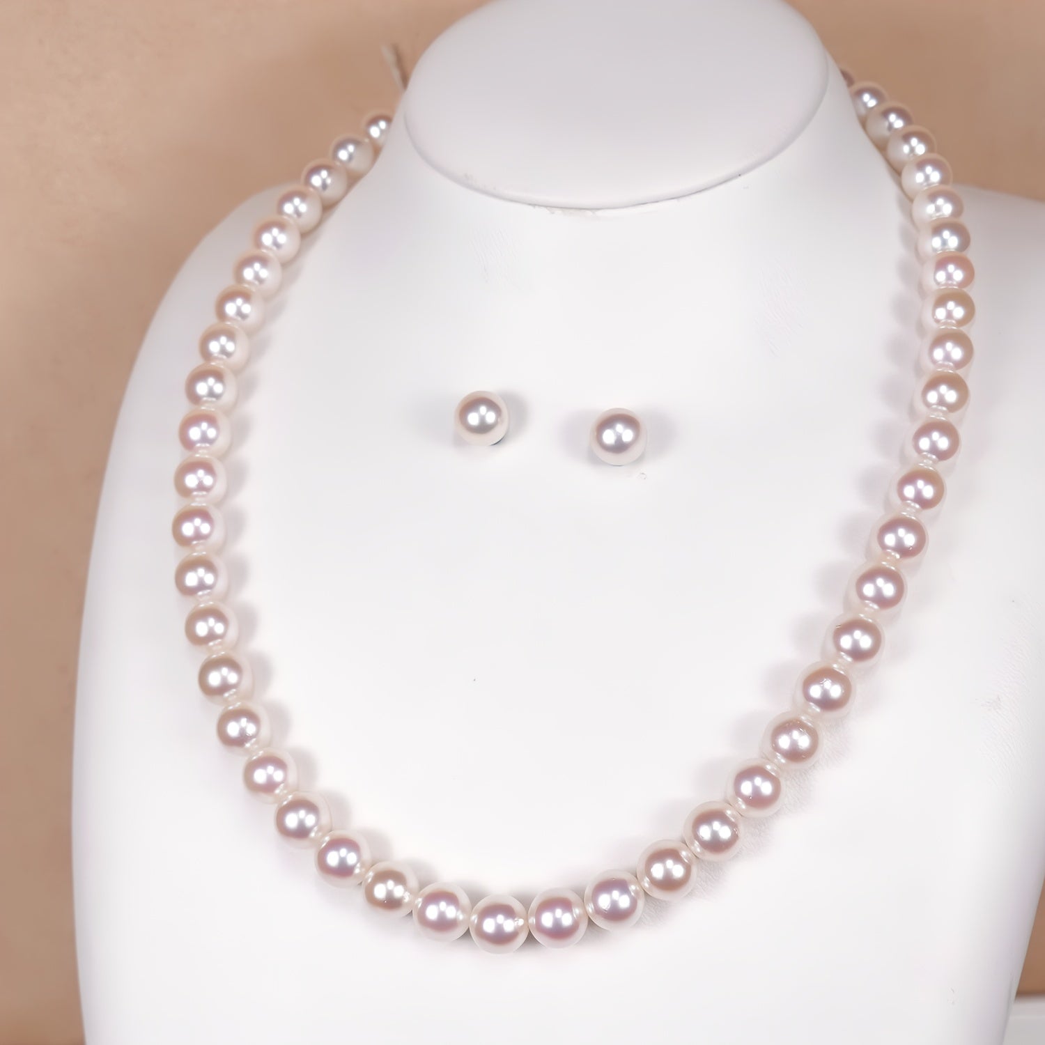 真珠ネックレス+イヤリング(ピアス)セット-7.5〜8.0mm