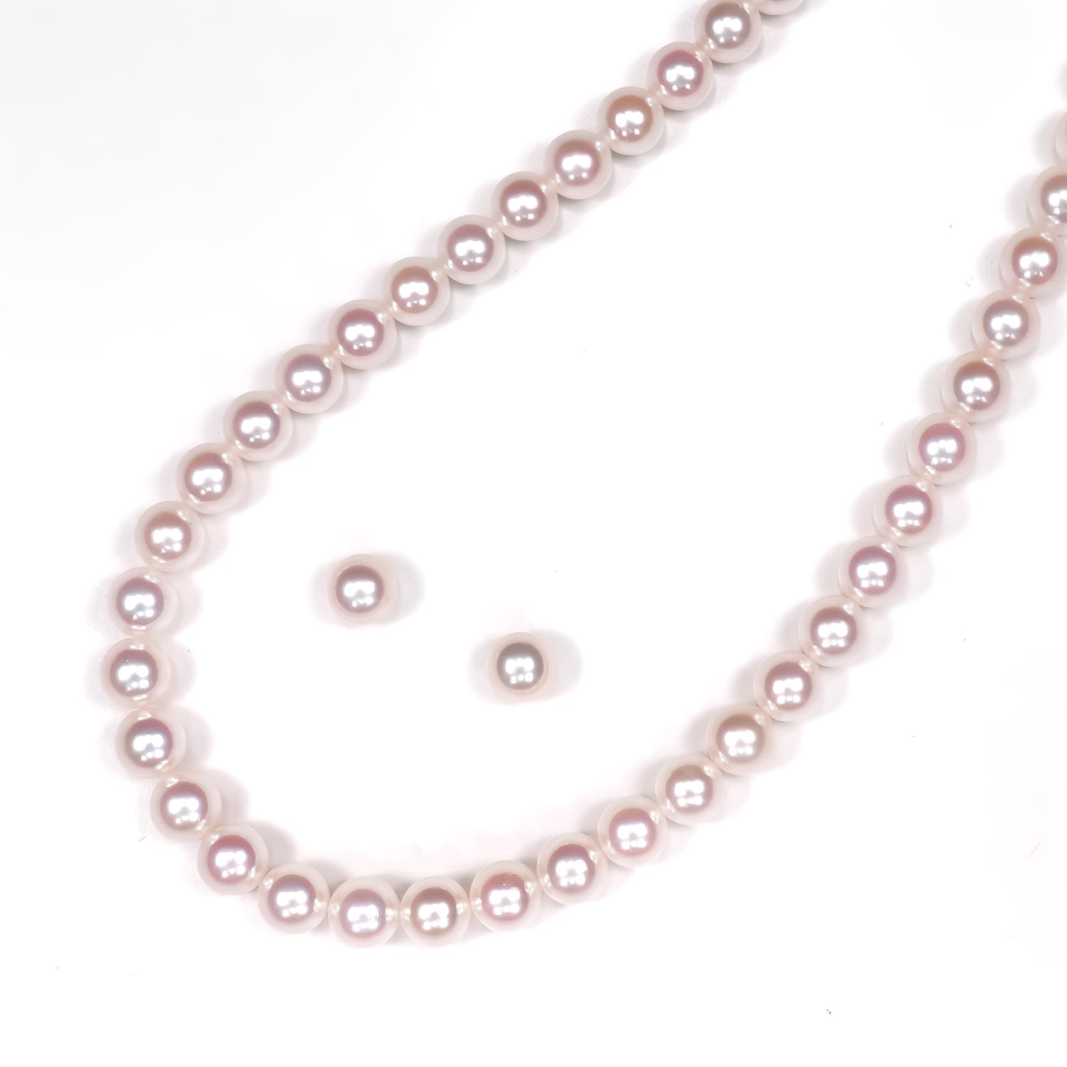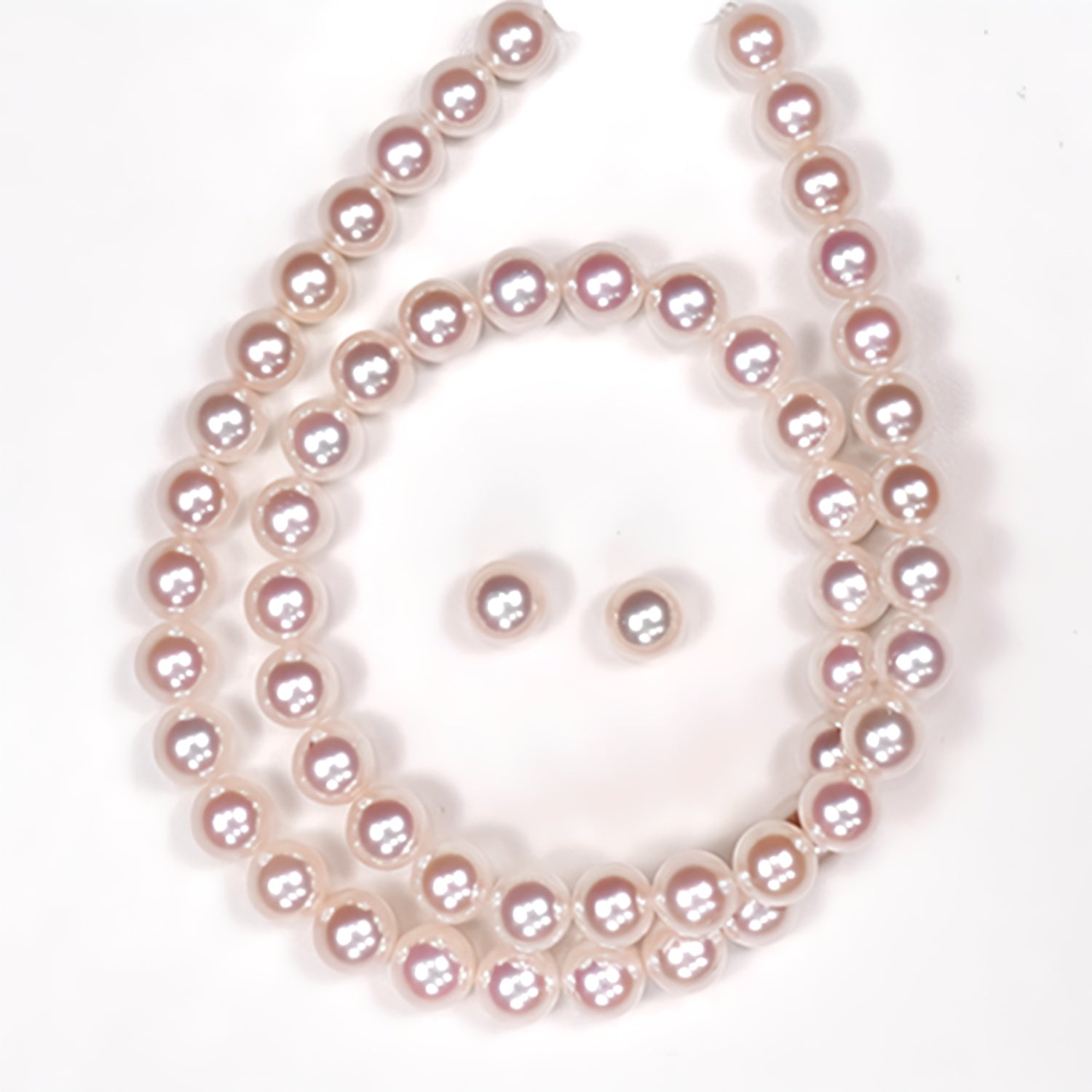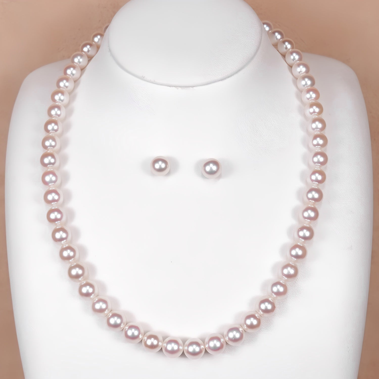 真珠ネックレス+イヤリング(ピアス)セット-7.5〜8.0mm