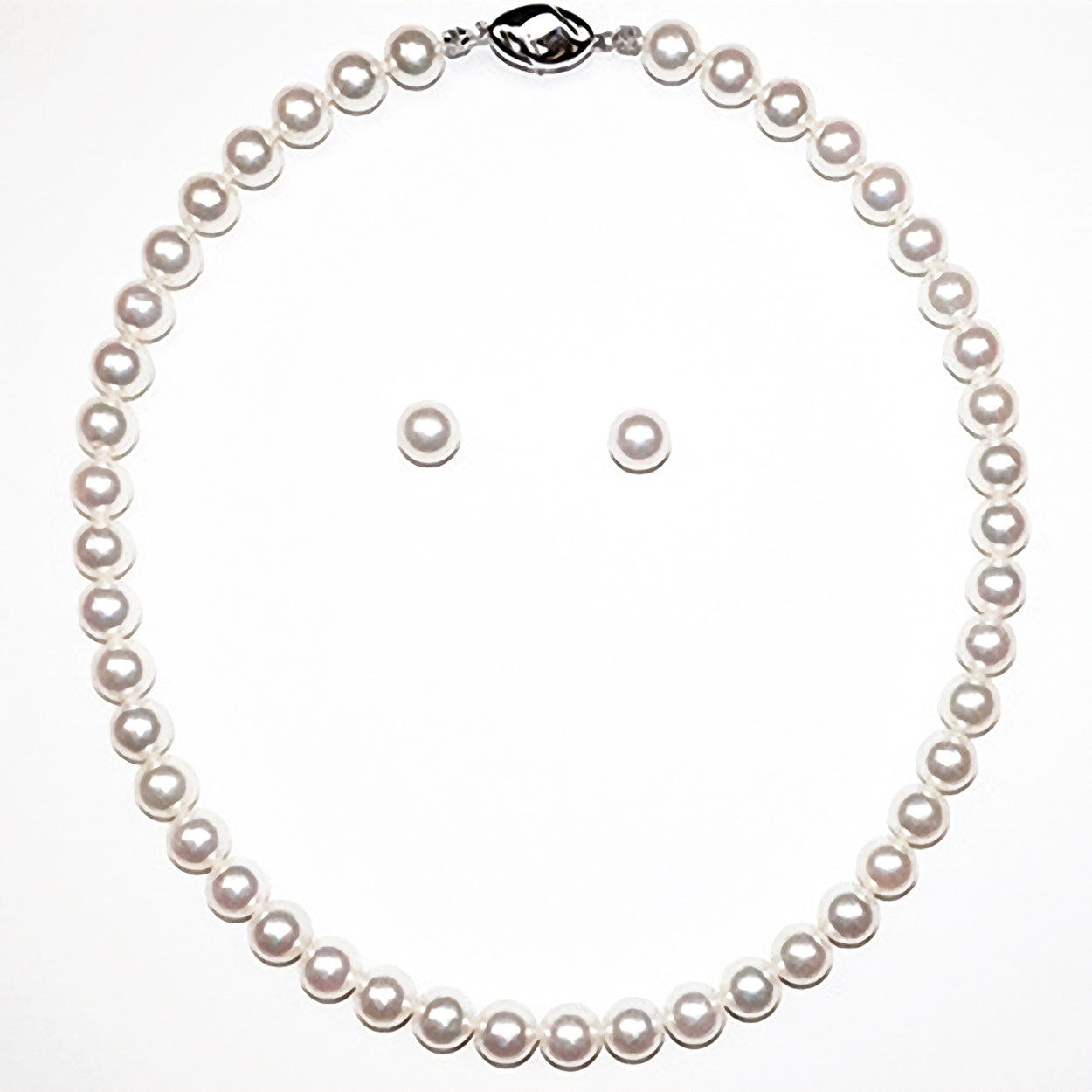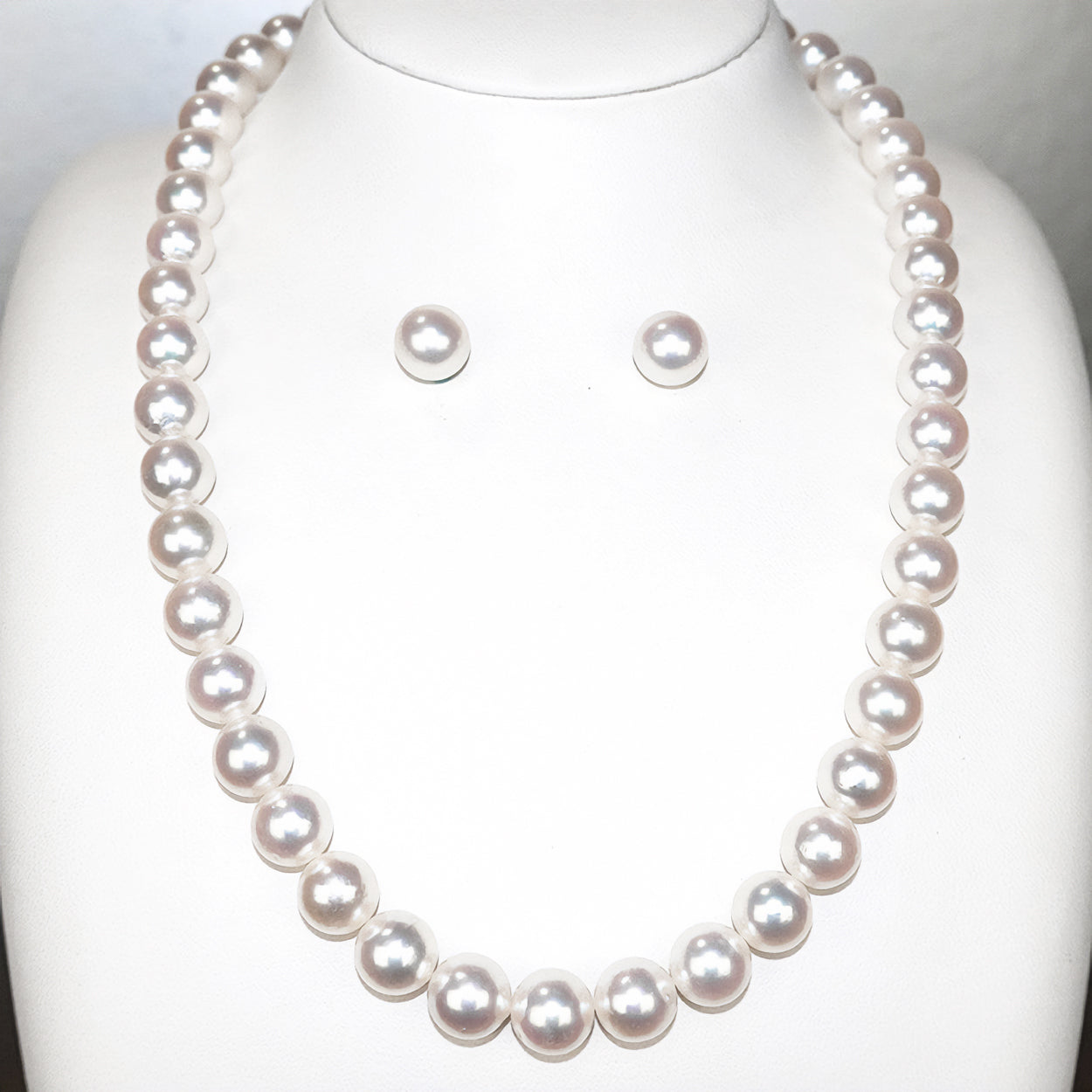 真珠ネックレス+イヤリング(ピアス)セット【9.0~9.5mm】
