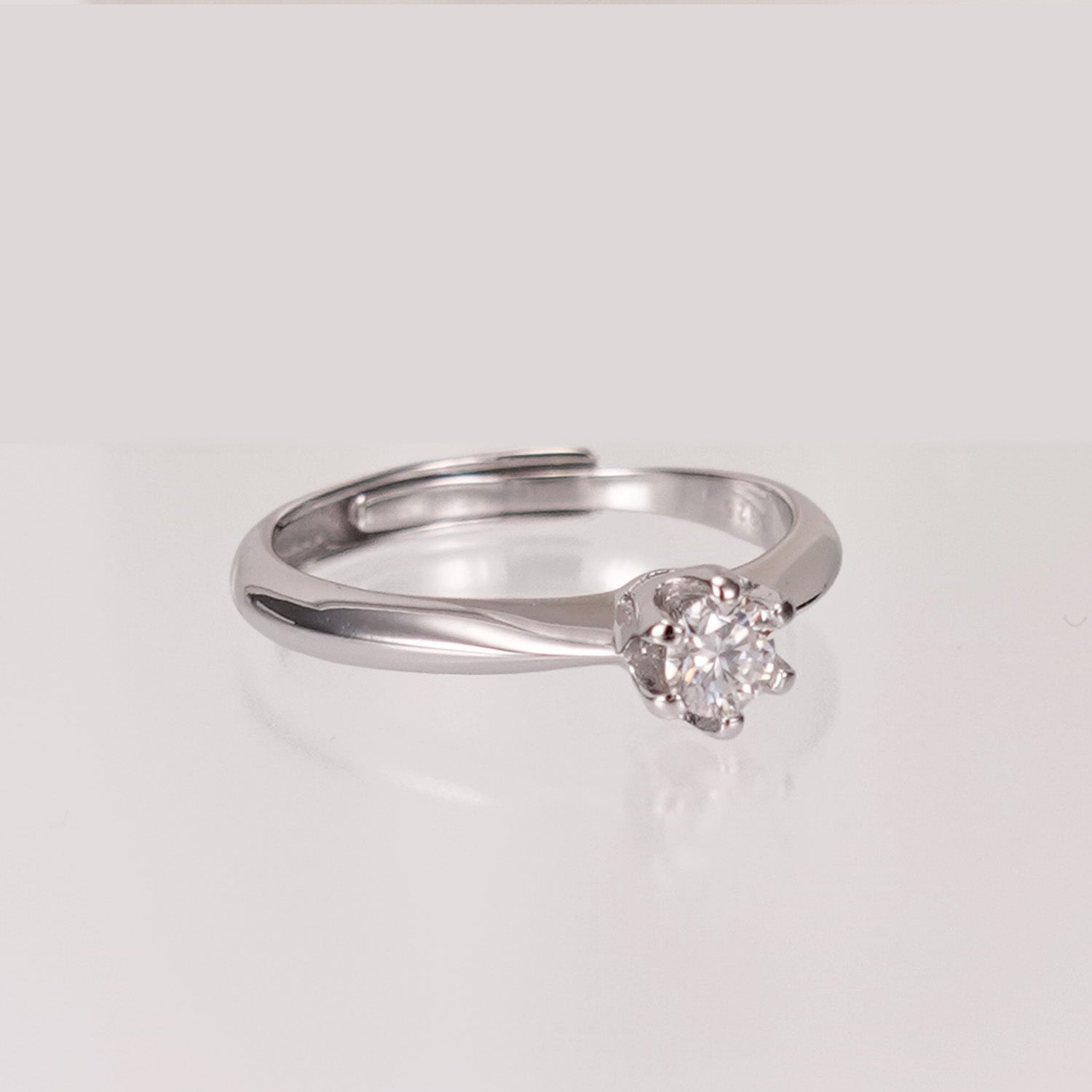 プロポーズリング シルバーにモアサナイトをあしらったシンプルな指輪 サイズ調整可能(5〜21号)