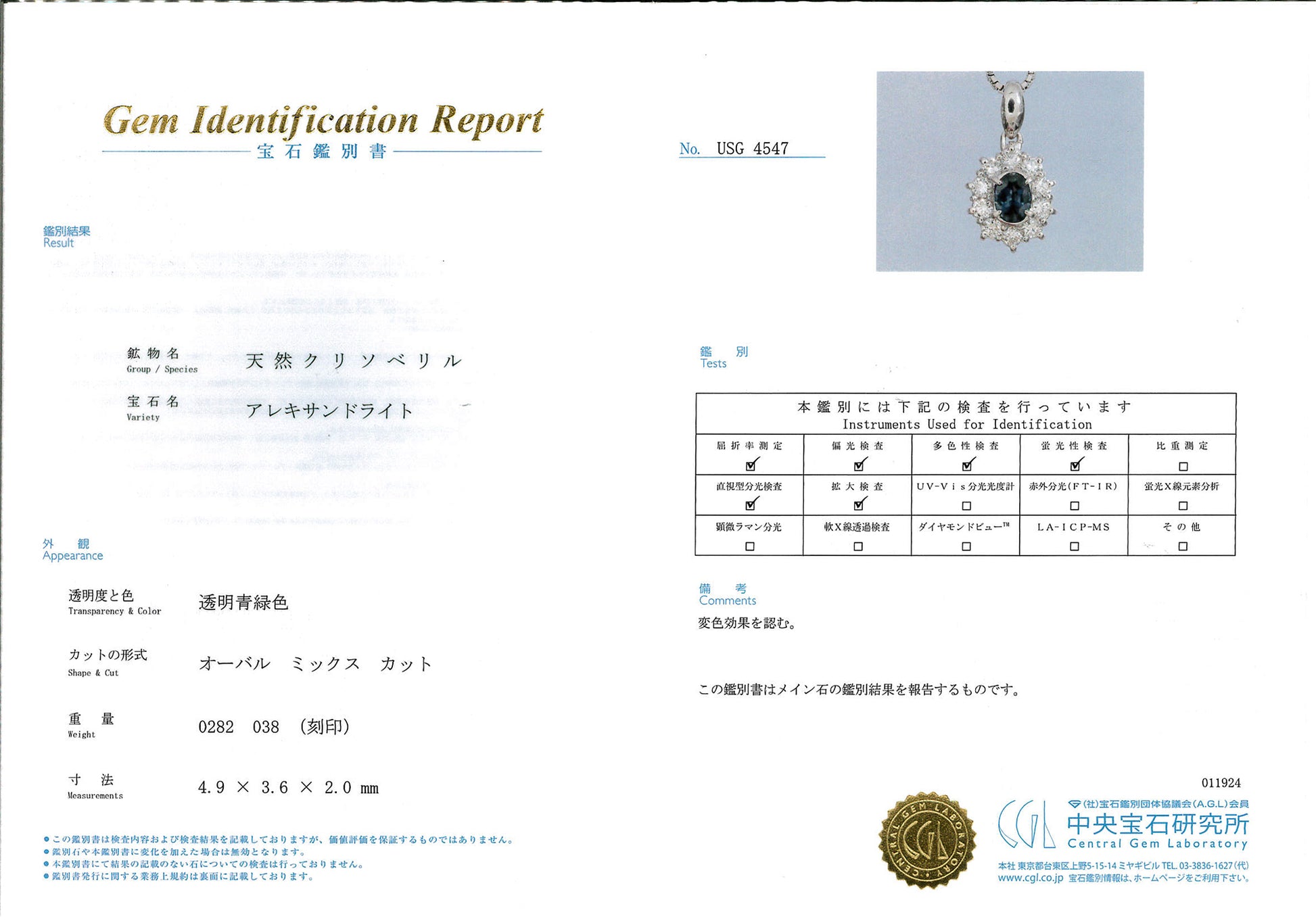 アレキサンドライトペンダント 希少で高品質な色の変化がはっきりする高級品 USG4547