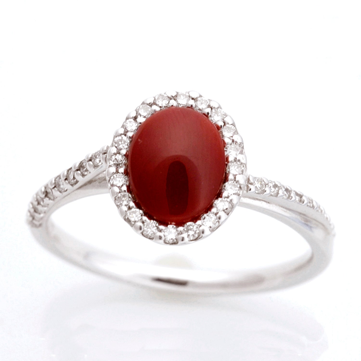 血赤珊瑚指輪 PS加工を施した高級サンゴをダイヤモンドで包み込んだリング RKM-364