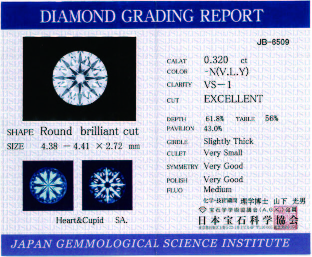 ダイヤモンド:0.320ct・VLY・VS1・EX・H&C