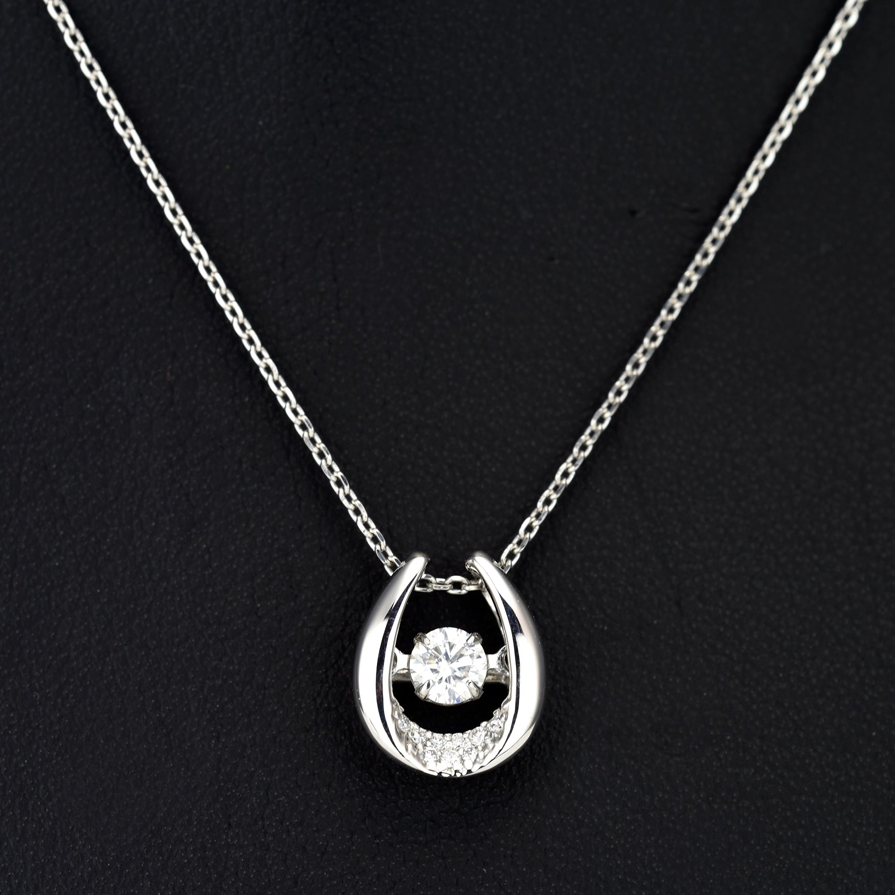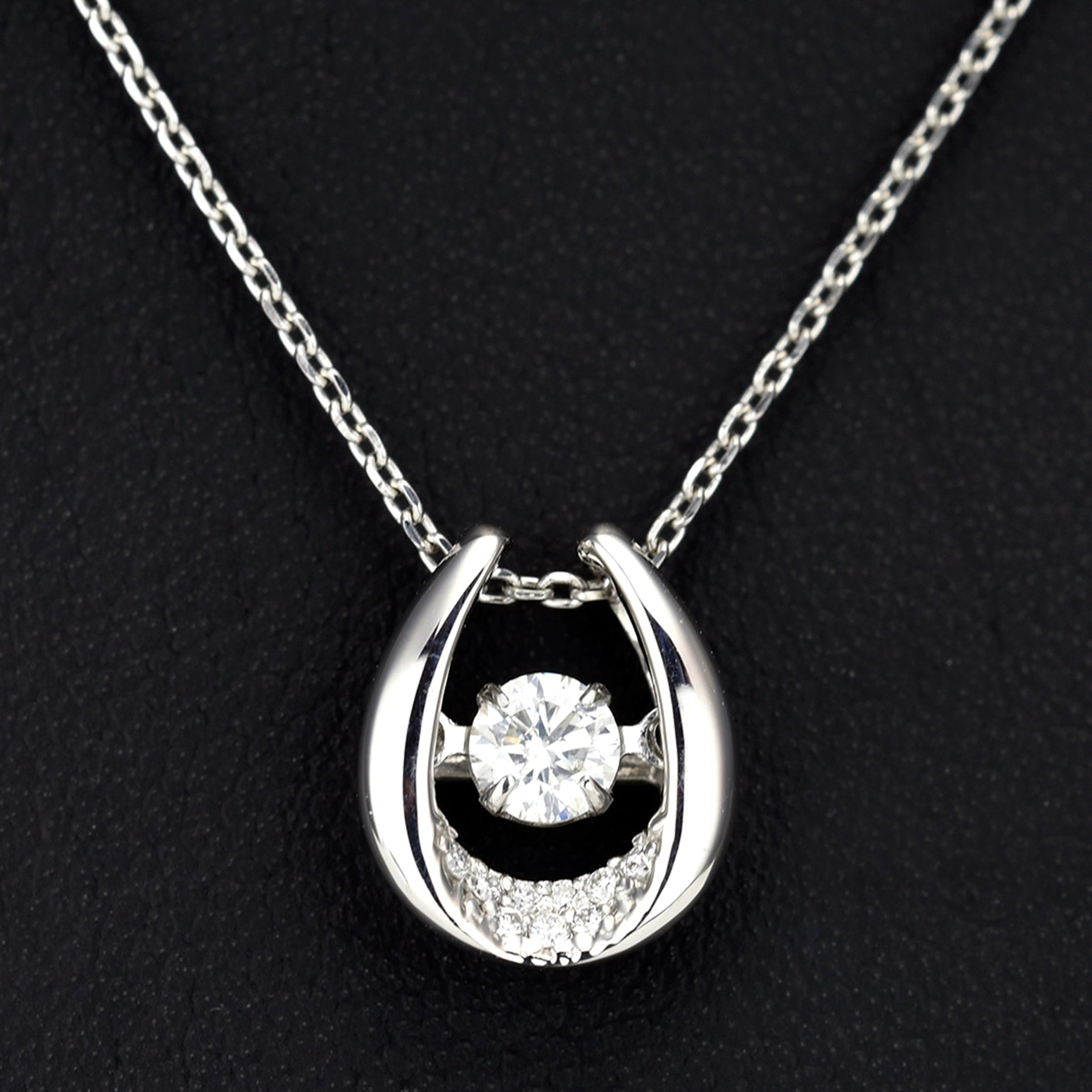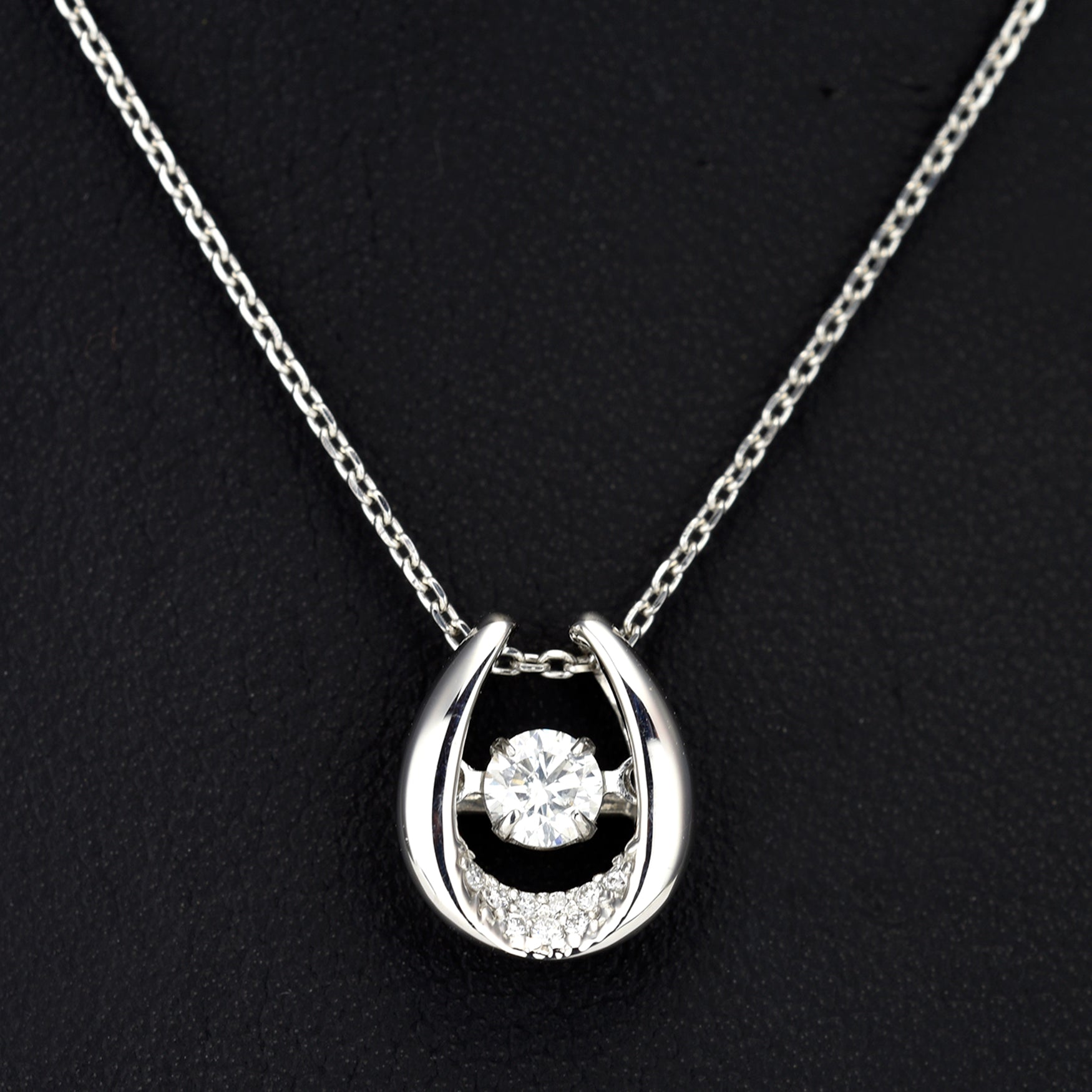 【ダンシングストーン】馬蹄形 (幸運・幸福を招くと言われるデザイン)ダイヤモンドペンダント〜Pt-0.20,F,VS2,VG