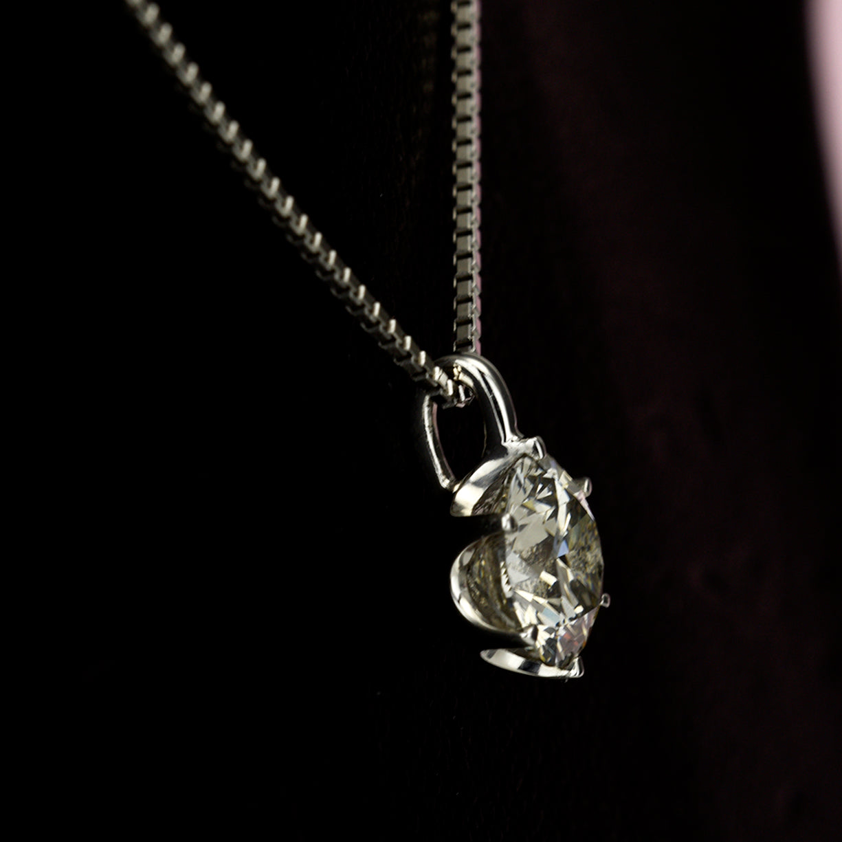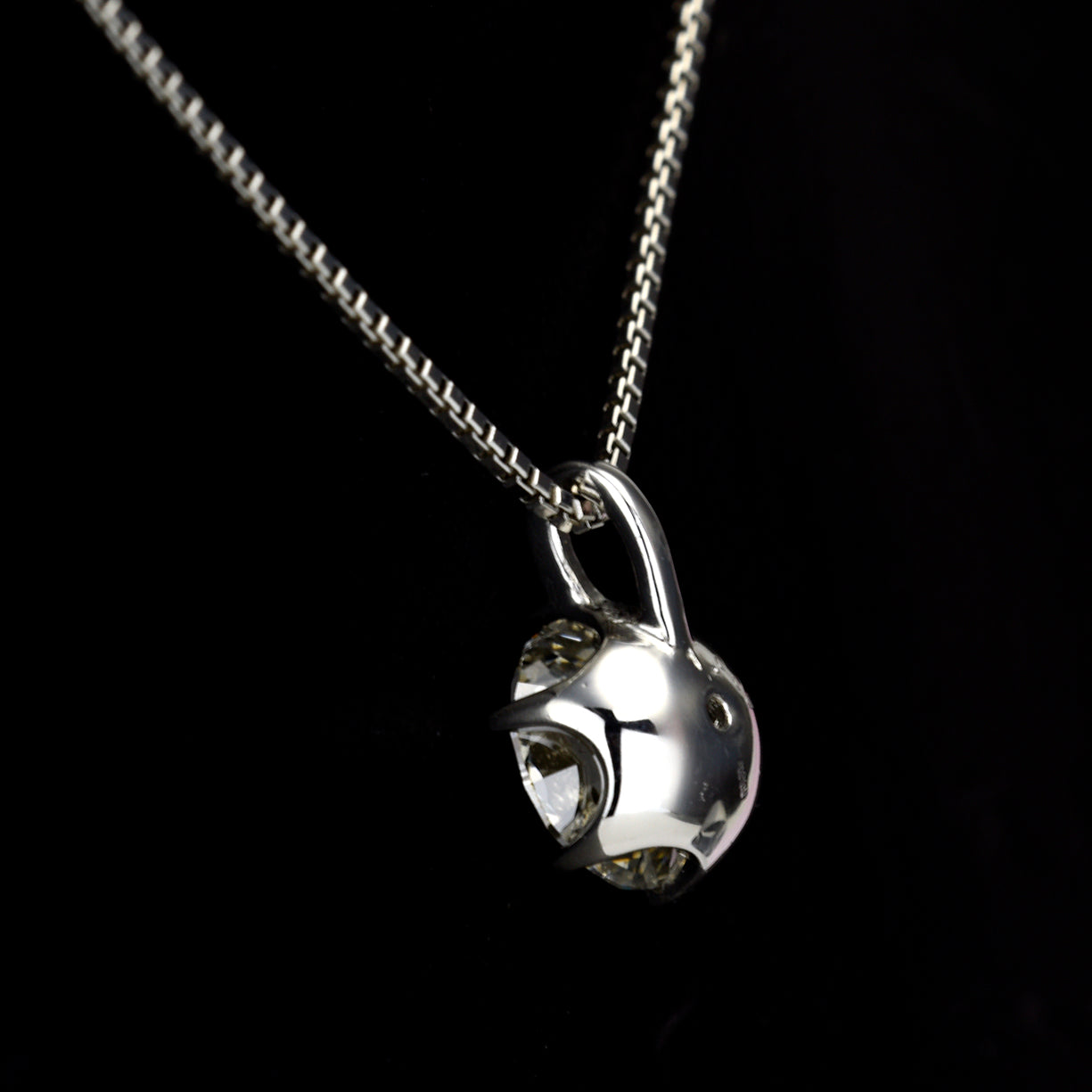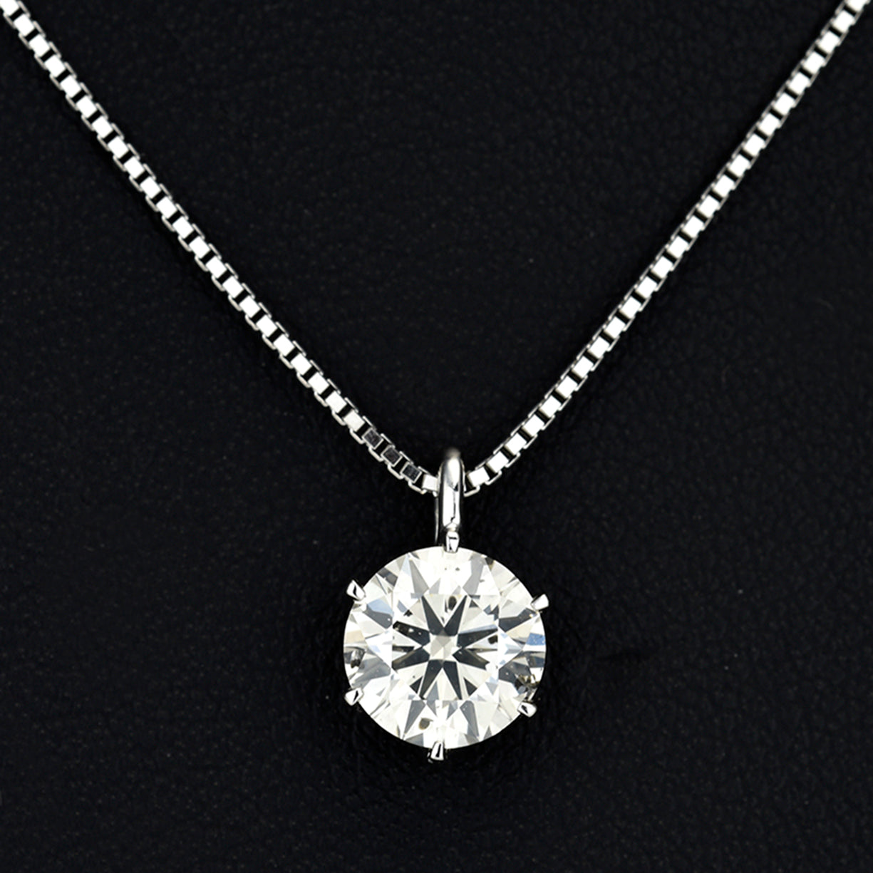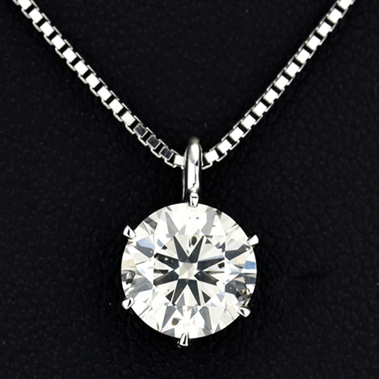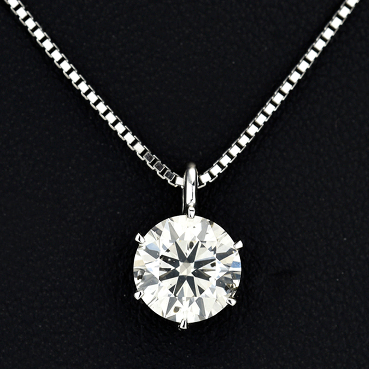 しっかりした作りながら目立たない6本爪で、1カラット超のダイヤモンドを留めたペンダント。