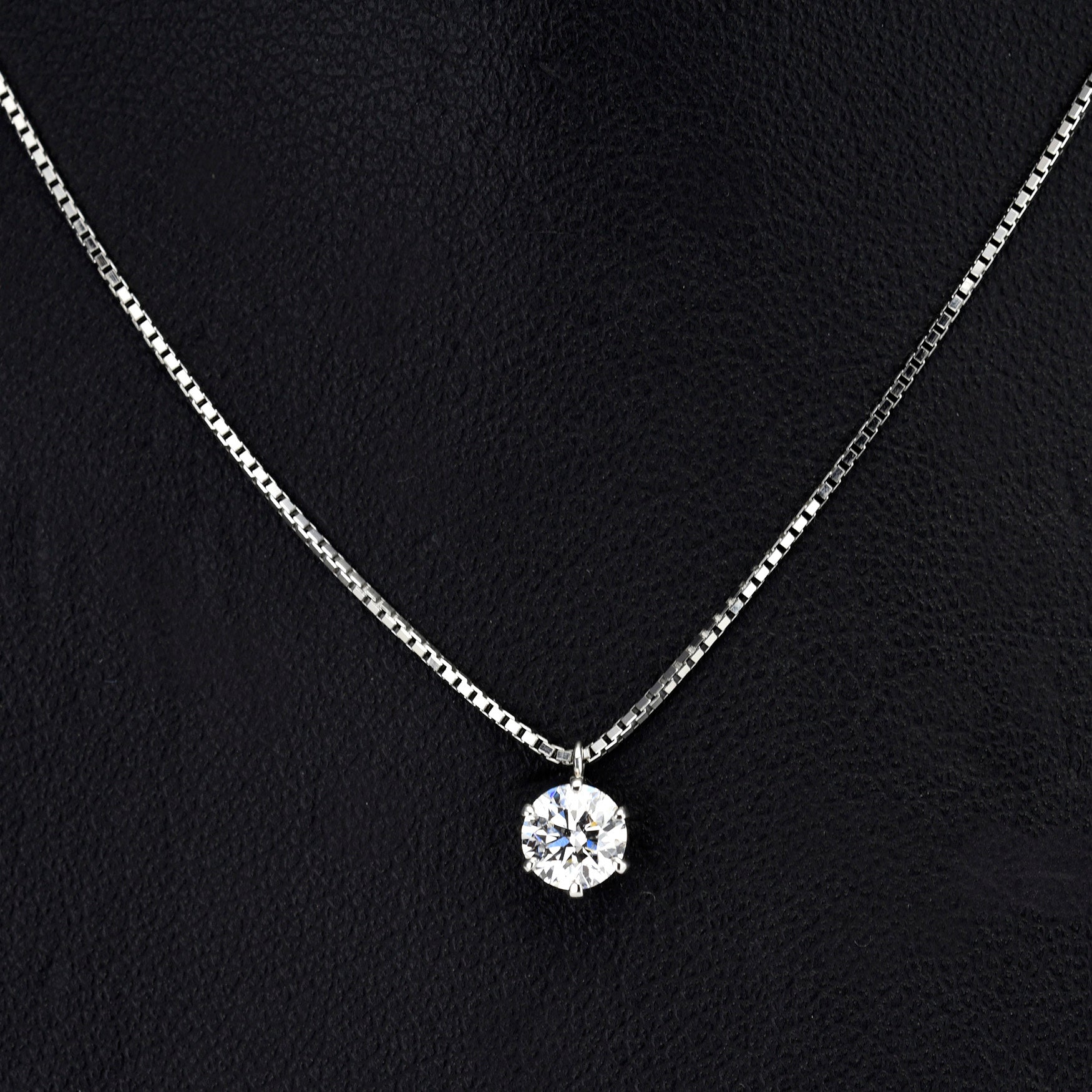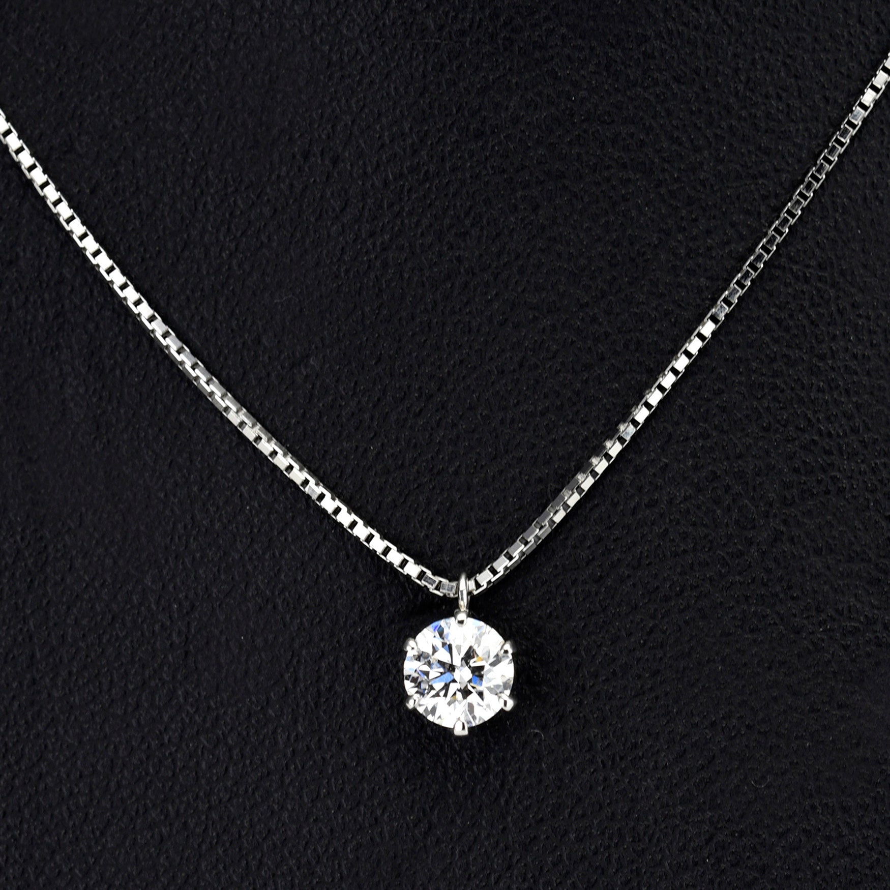 カラーとカットの良いきれいなダイヤモンドを目立たない小さな爪で留めたプラチナ製ペンダント