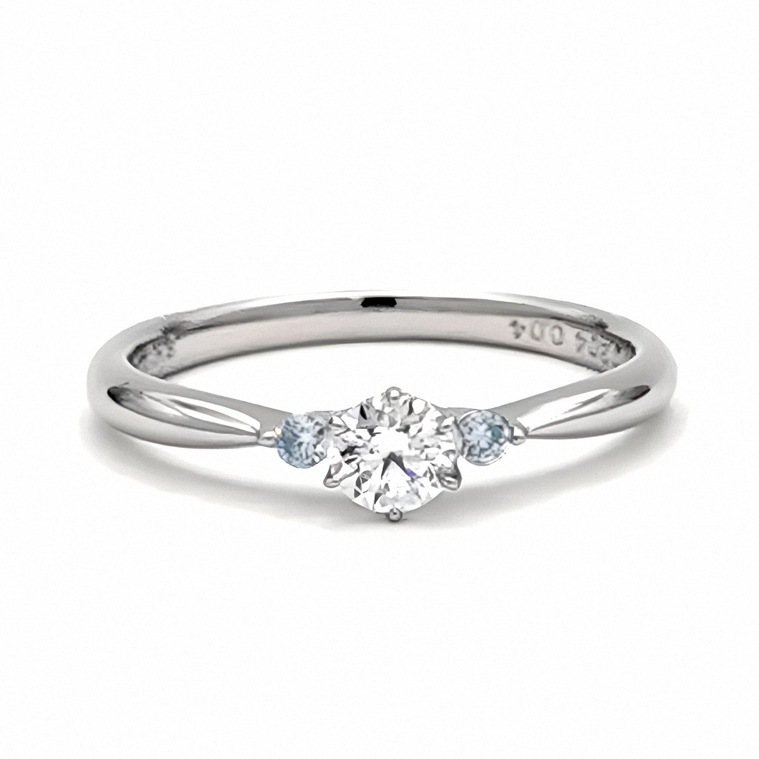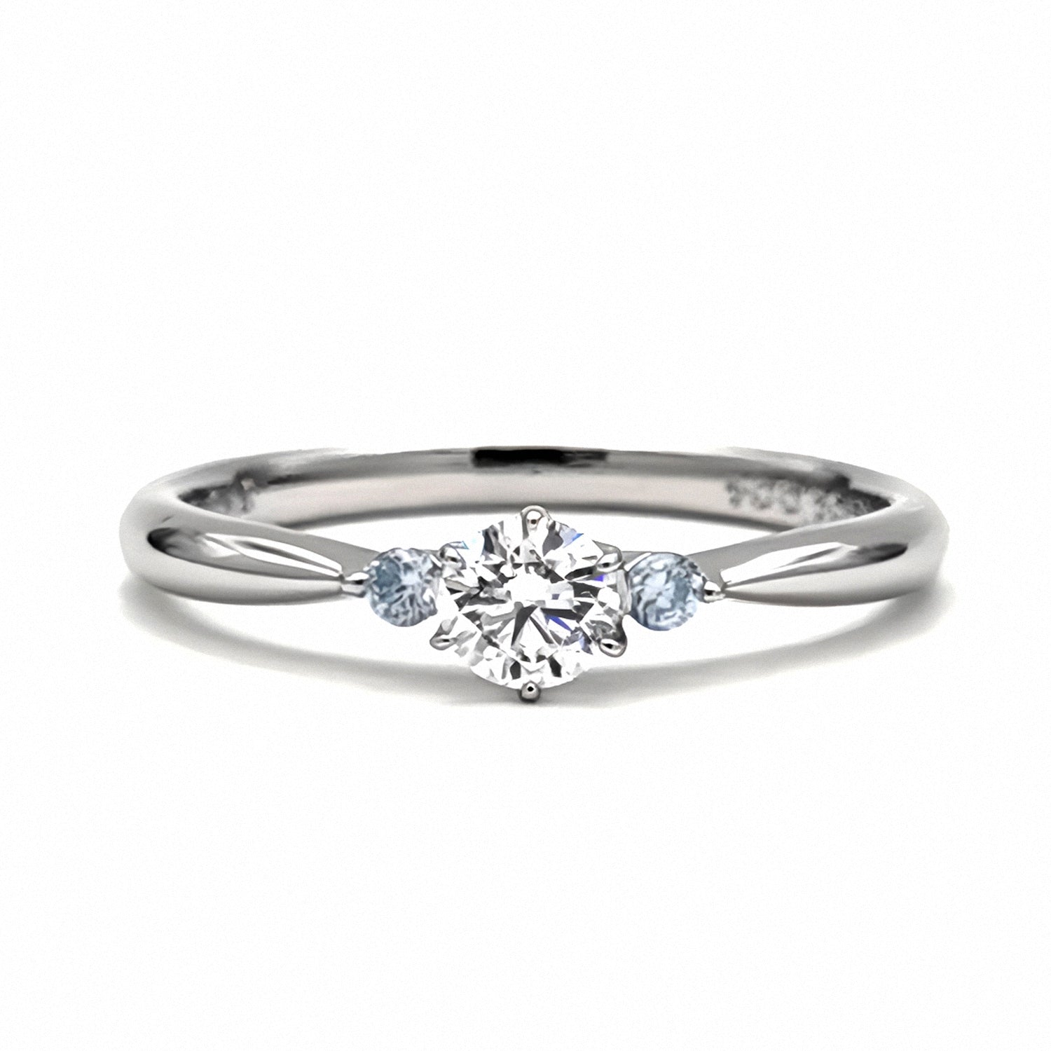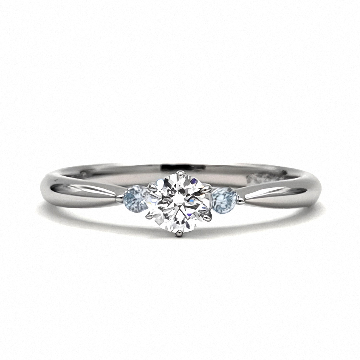 サイドに爽やかな水色のアイスブルーダイヤを使用
