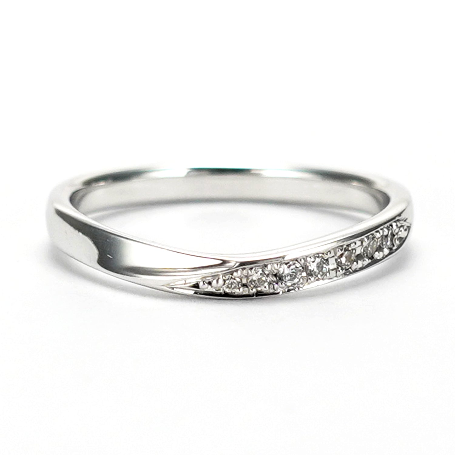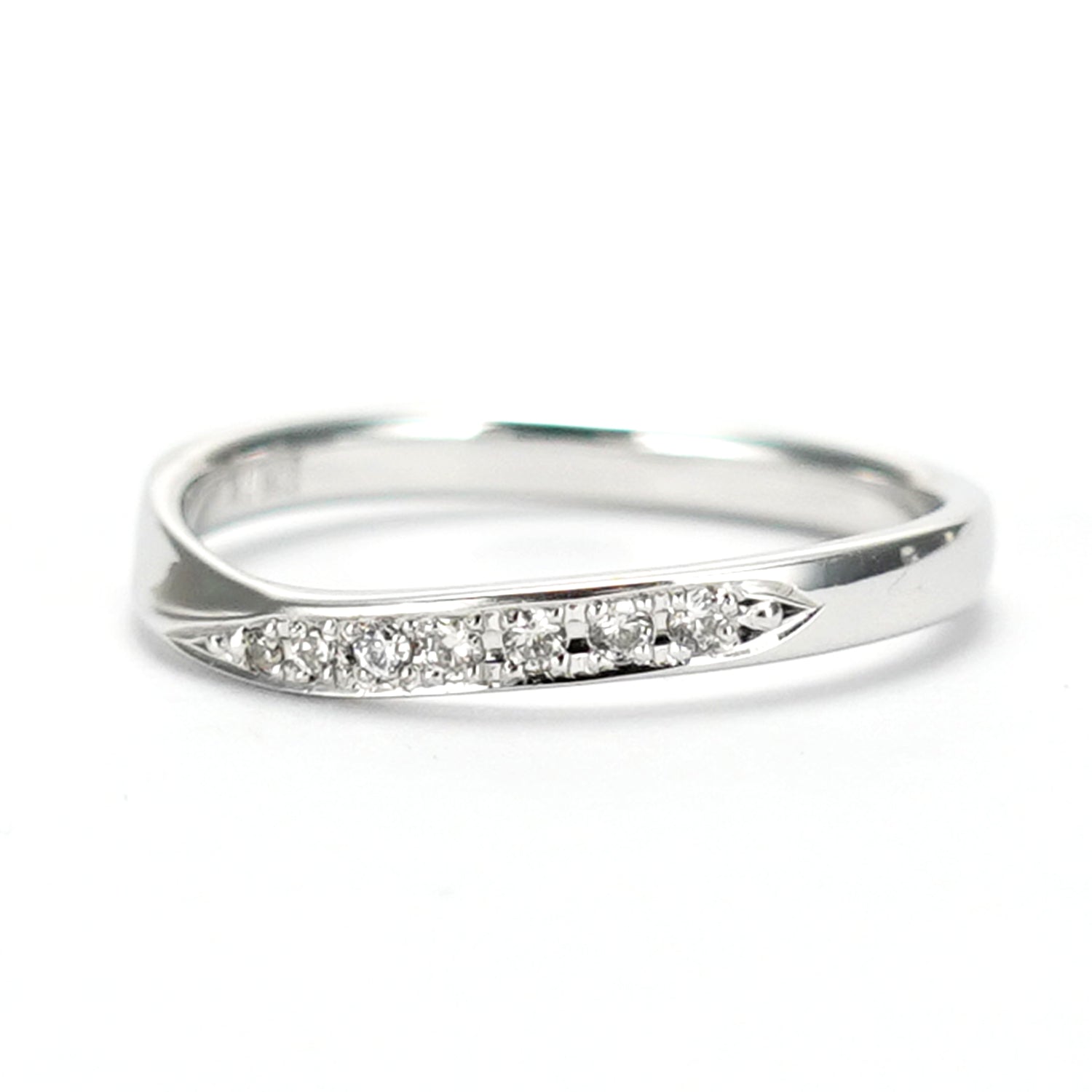 特に緩やかなウェーブやV字などの柔らかい雰囲気の形状のリングを作成する為には、多くの製造工程に熟練の職人の技術が必要なため、大量生産には不向きで高額になることが多いですが、リーズナブルな価格で提供させて頂いております。