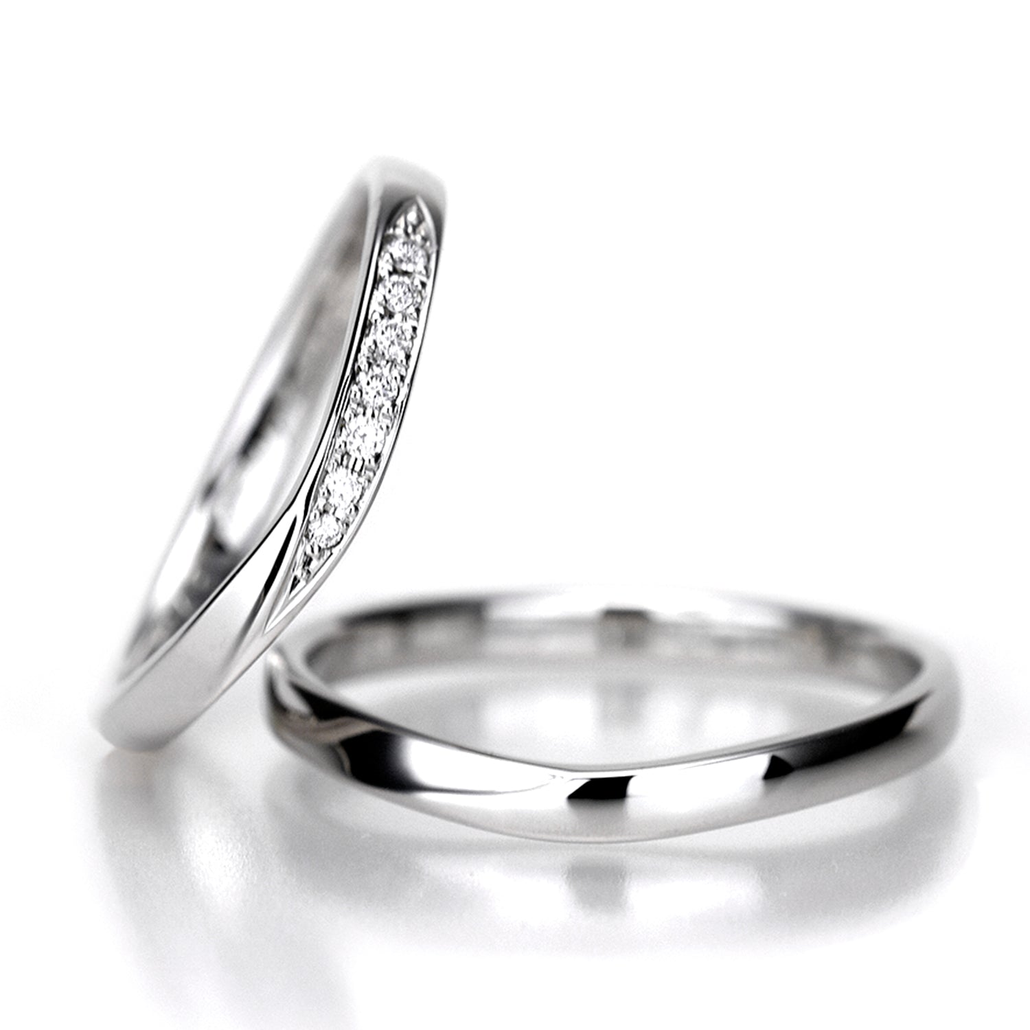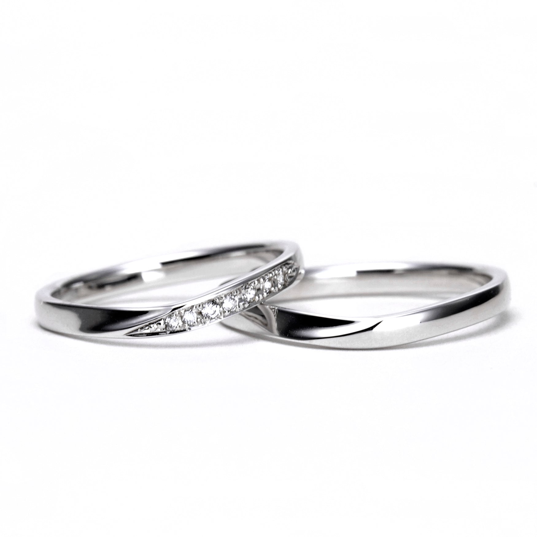 【鍛造/純プラチナ】結婚指輪ペア(Pt.999)高品質H&Cダイヤを使用 緩やかなV字デザイン 変形やキズに強い純プラチナ製鍛造リング MpKK91-DhS-L-Pt999