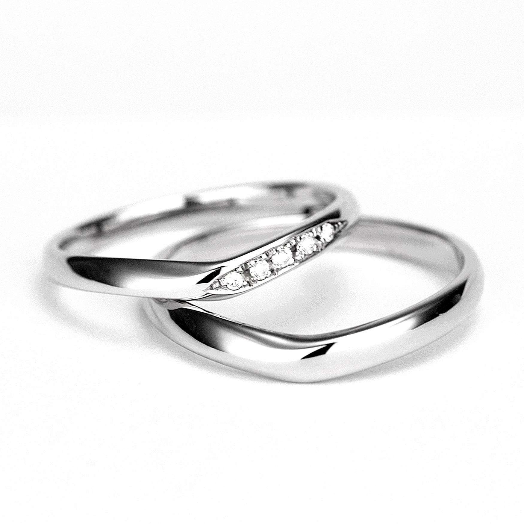 シンプルながら滑らかなV字デザインが特徴のマリッジリング