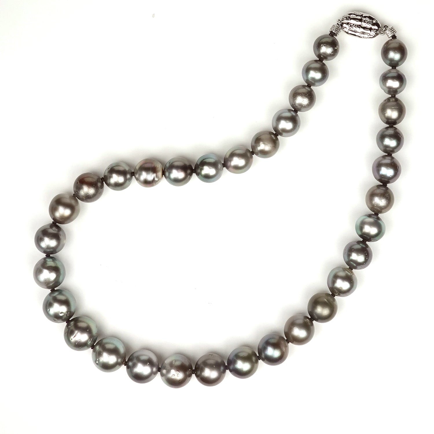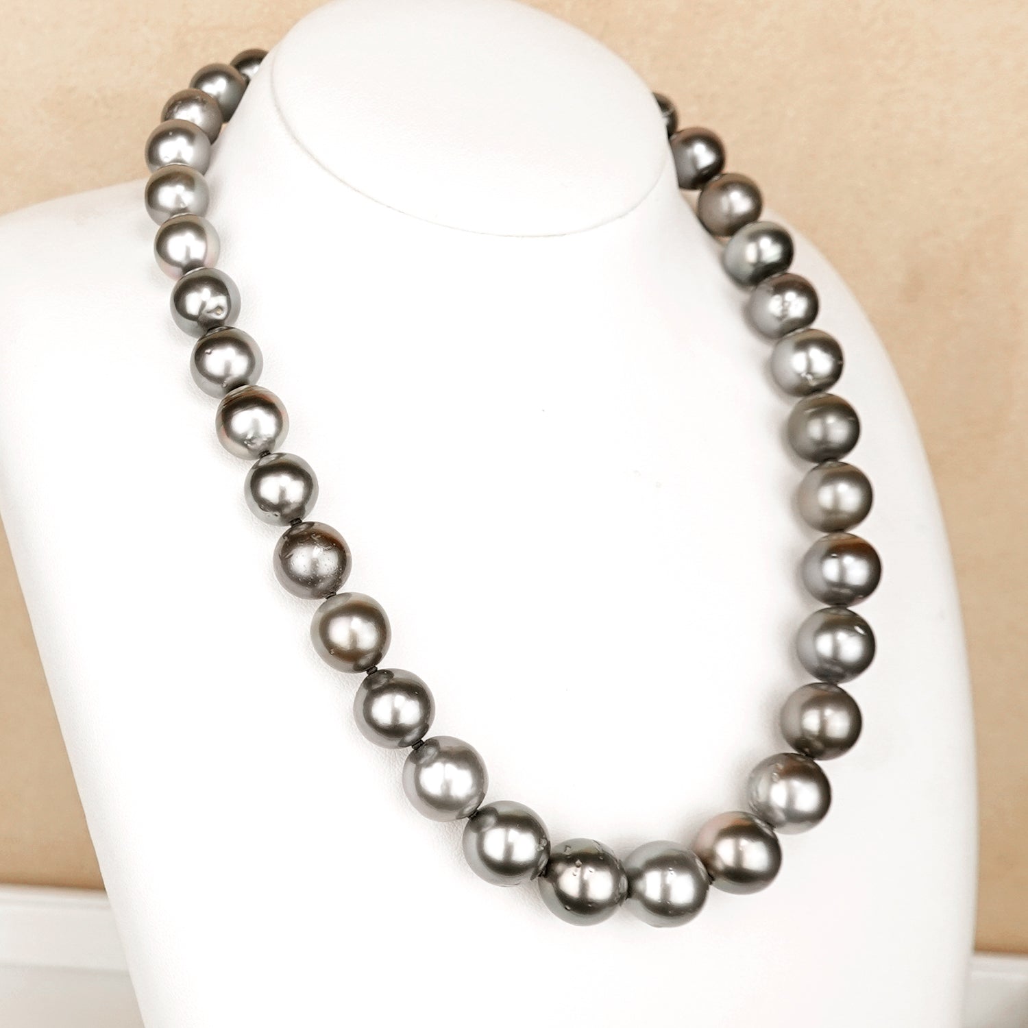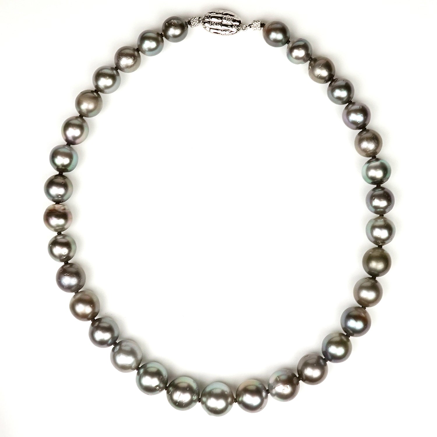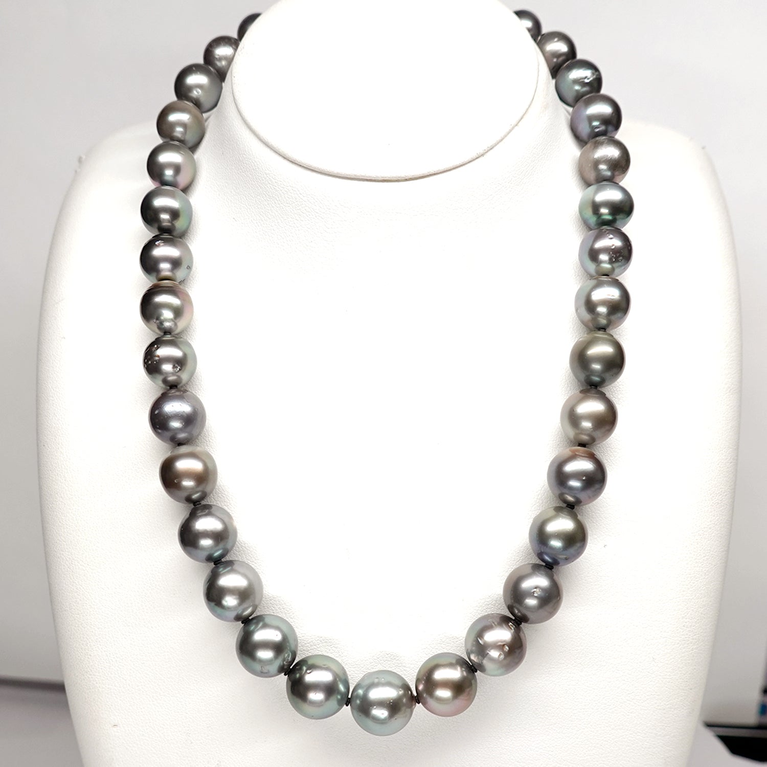 お手頃価格の黒蝶真珠ネックレス ラウンド~セミラウンド系、KC-N-10.0〜12.5mm-SE001024