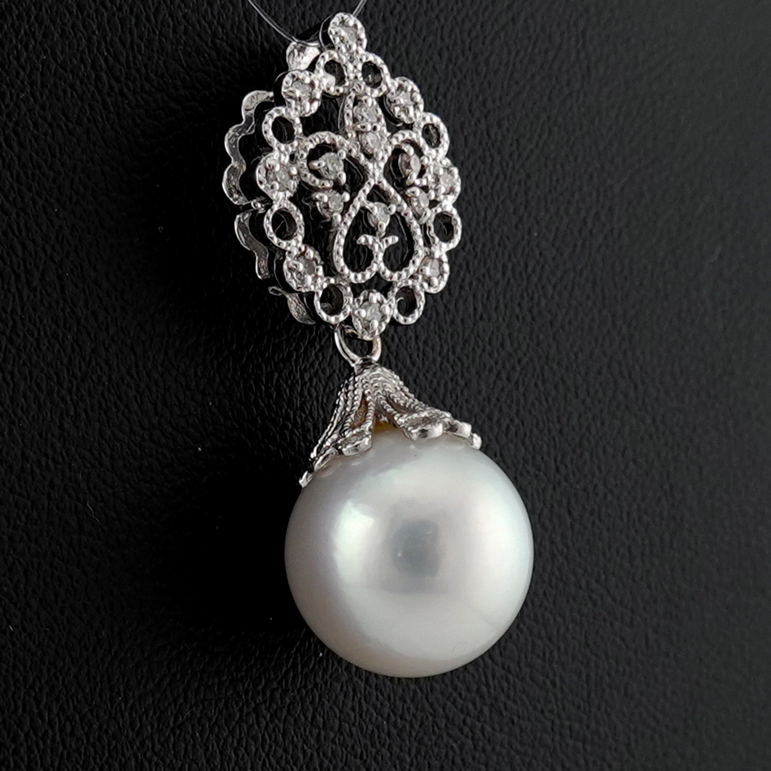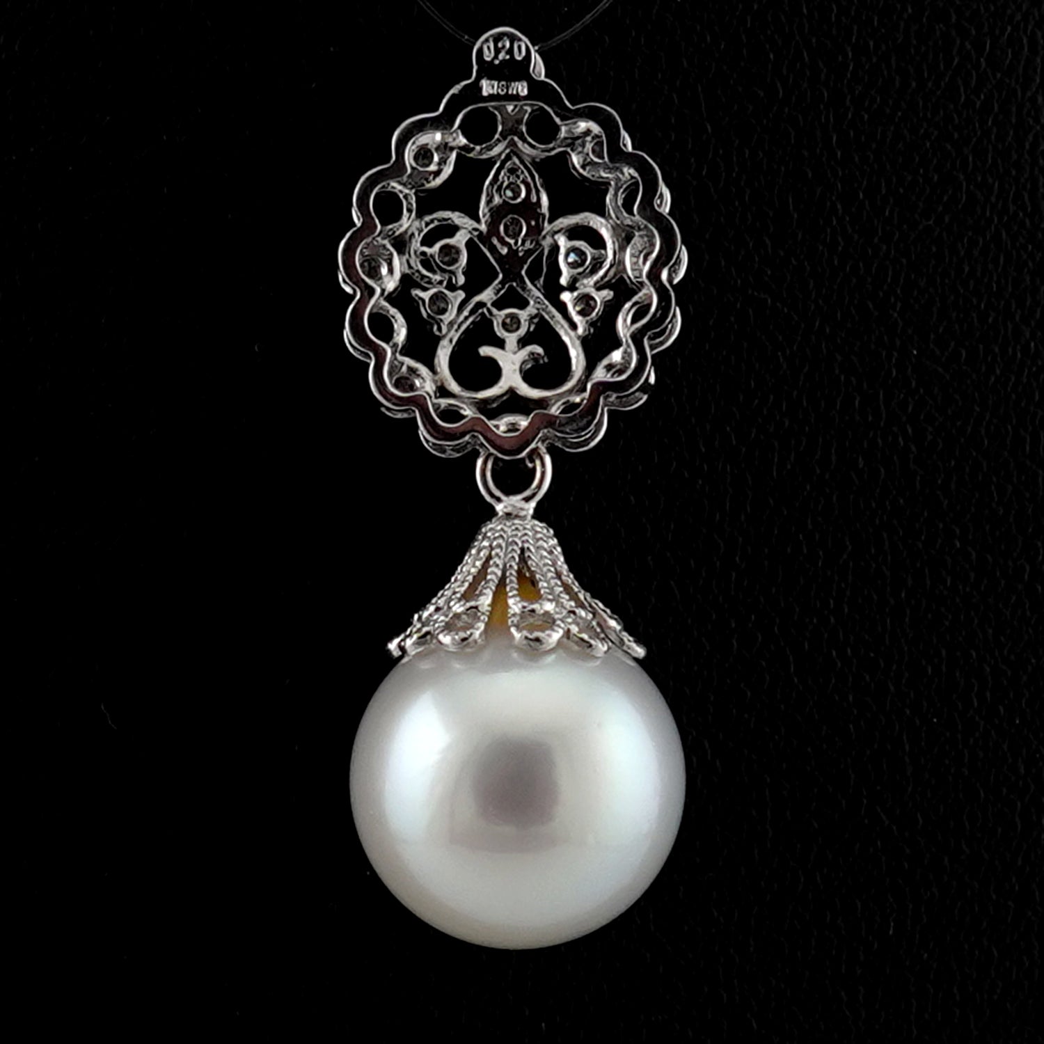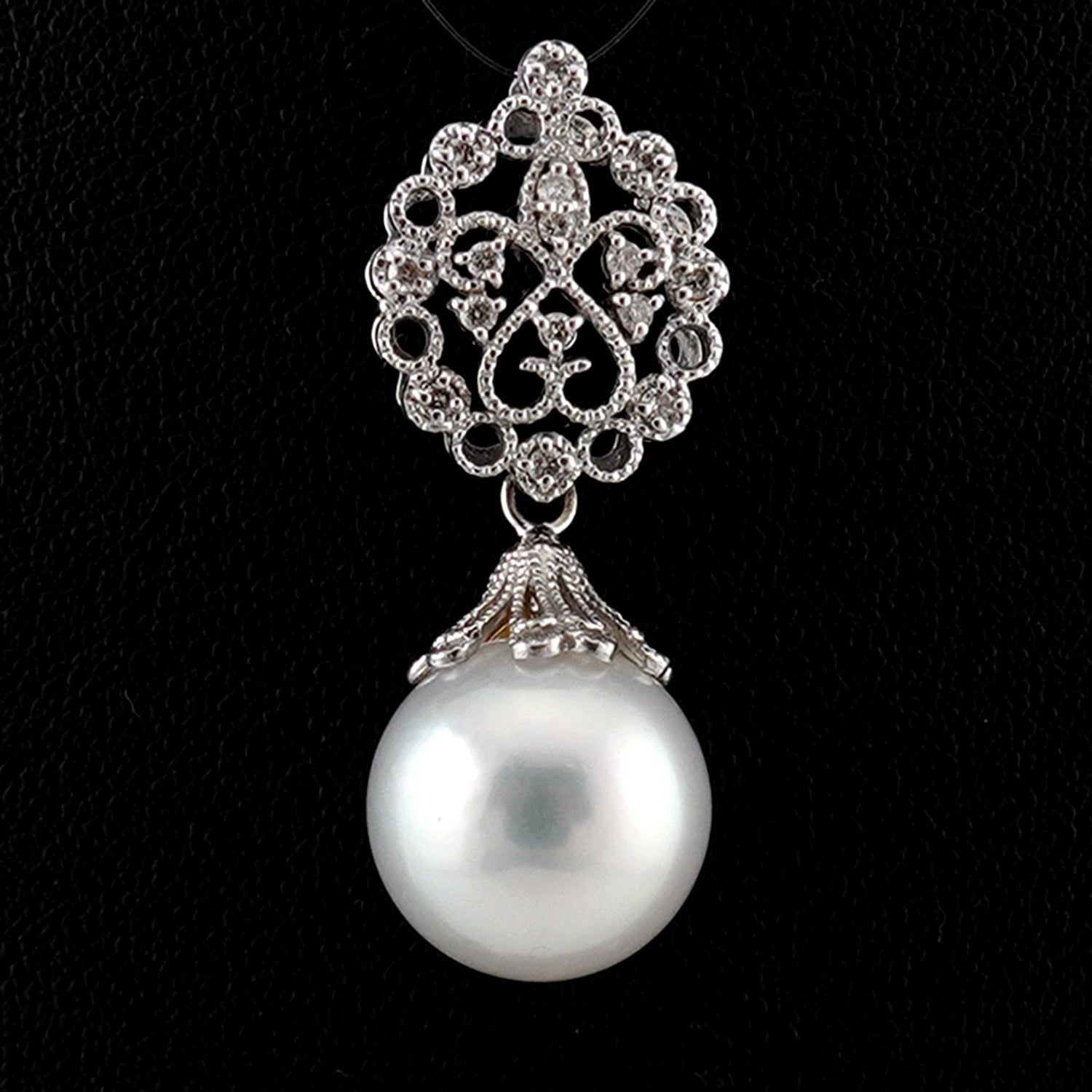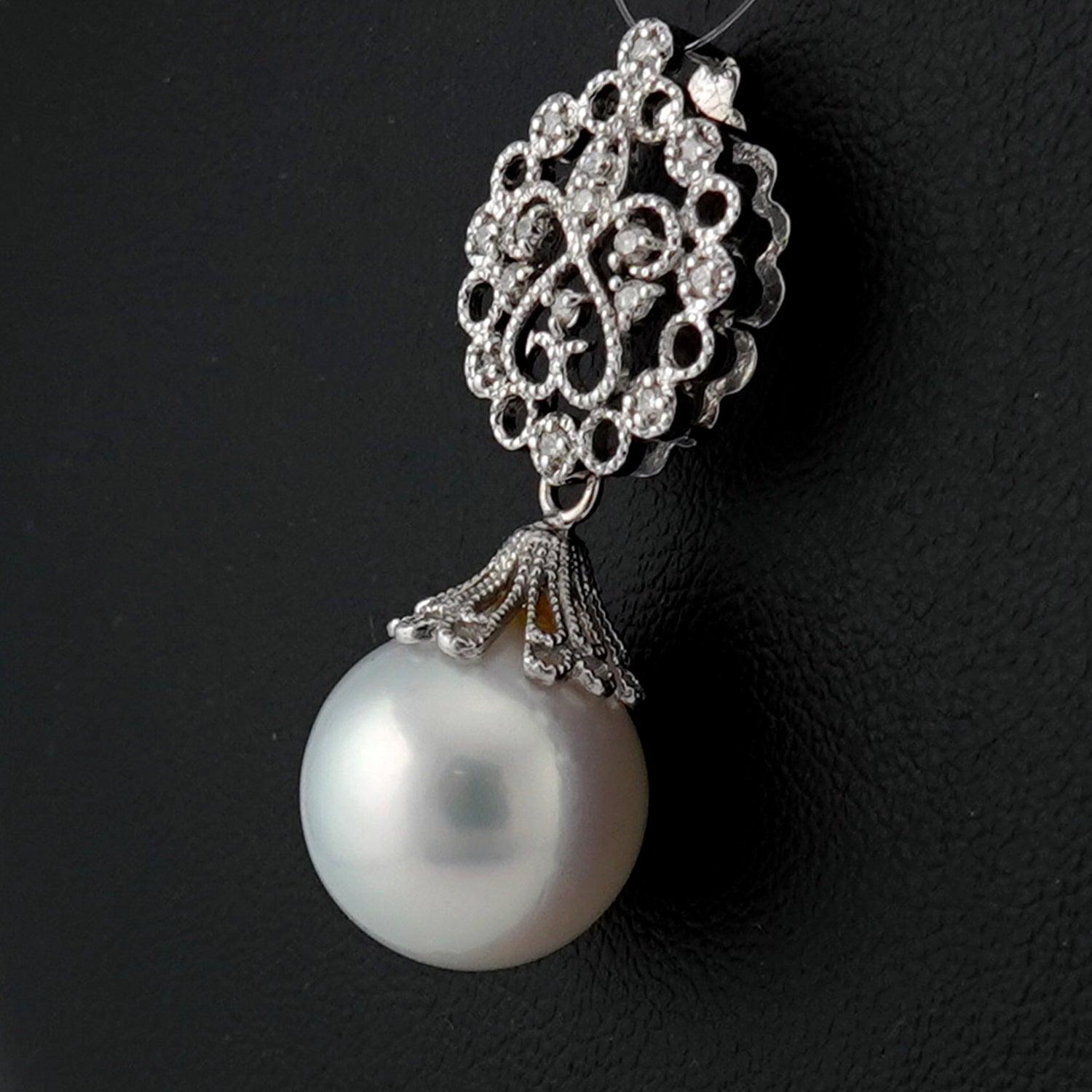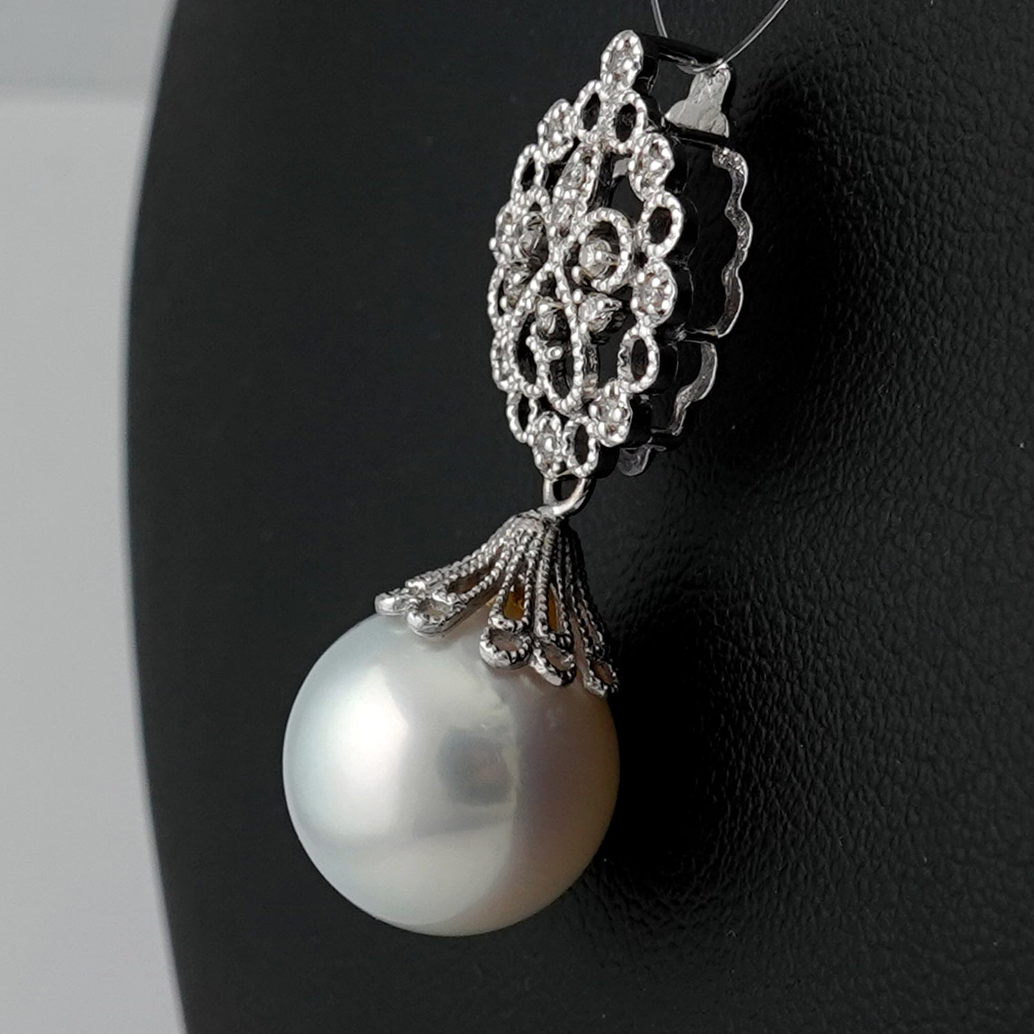 白蝶真珠ペンダントトップ シルバーホワイト系の中に淡いピンク系の色が見られる色・照りが美しい高品質の白蝶真珠(13.8mm) PHSC-13.8mm-K18WG-SE04110601