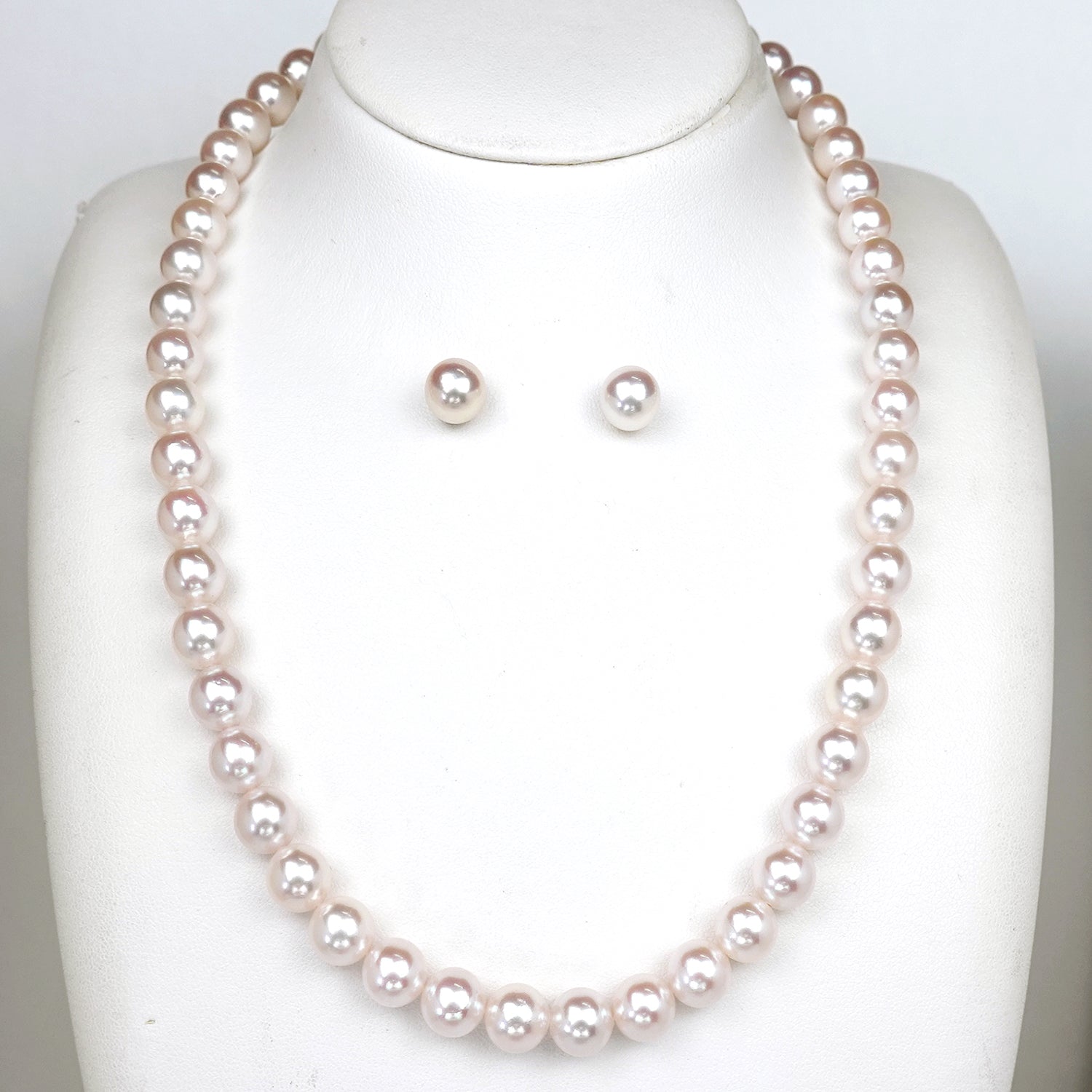 真珠ネックレス+イヤリング(ピアス)セット-8.0〜8.5mm 花珠に引けを取らないピンク系の色・照りのキレイな真珠 PNE80-OK22122601