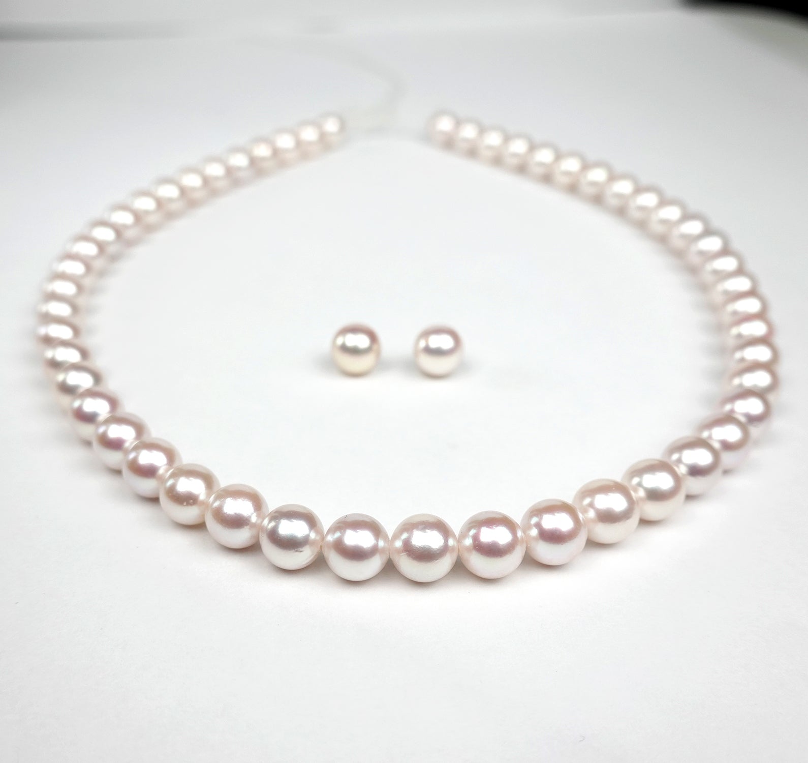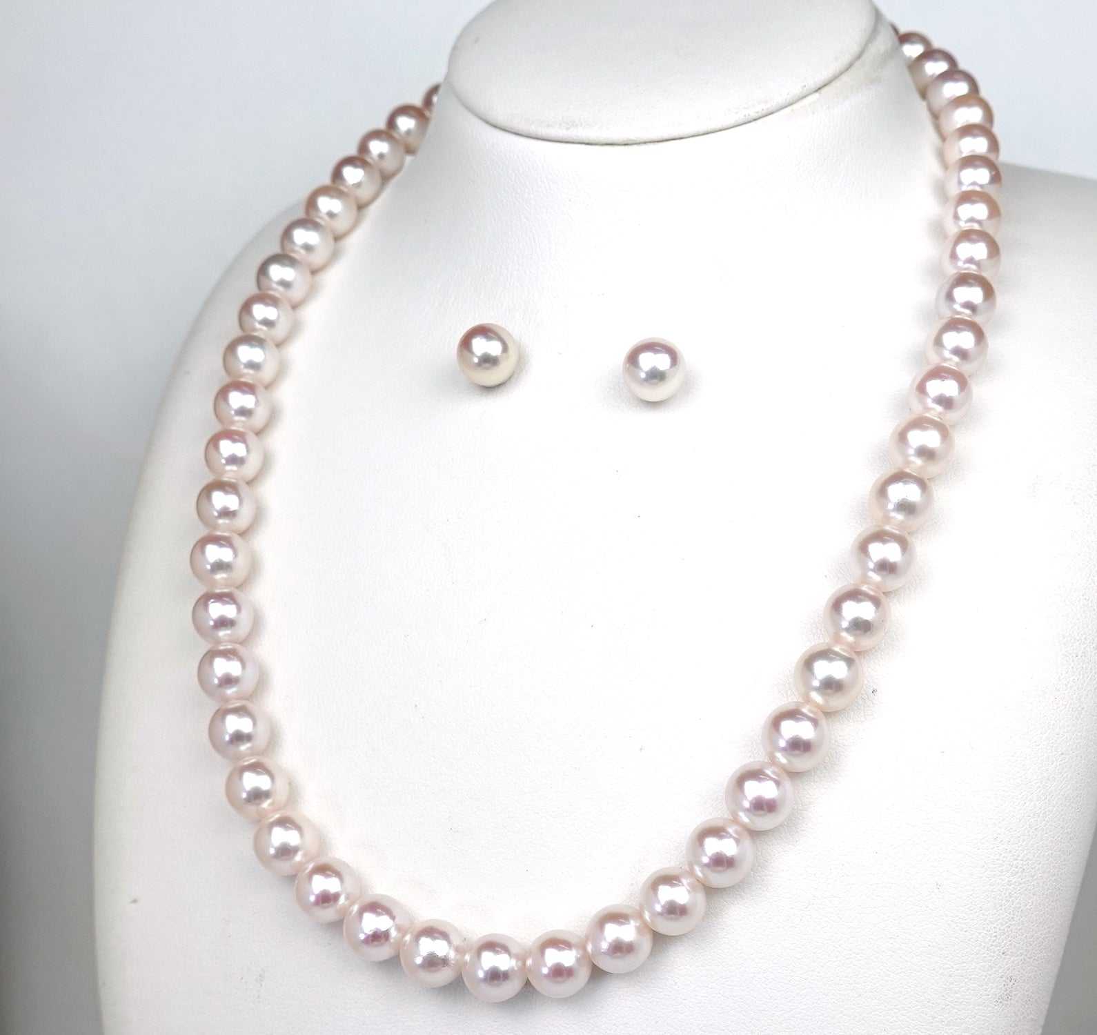 真珠ネックレス+イヤリング(ピアス)セット-8.0〜8.5mm