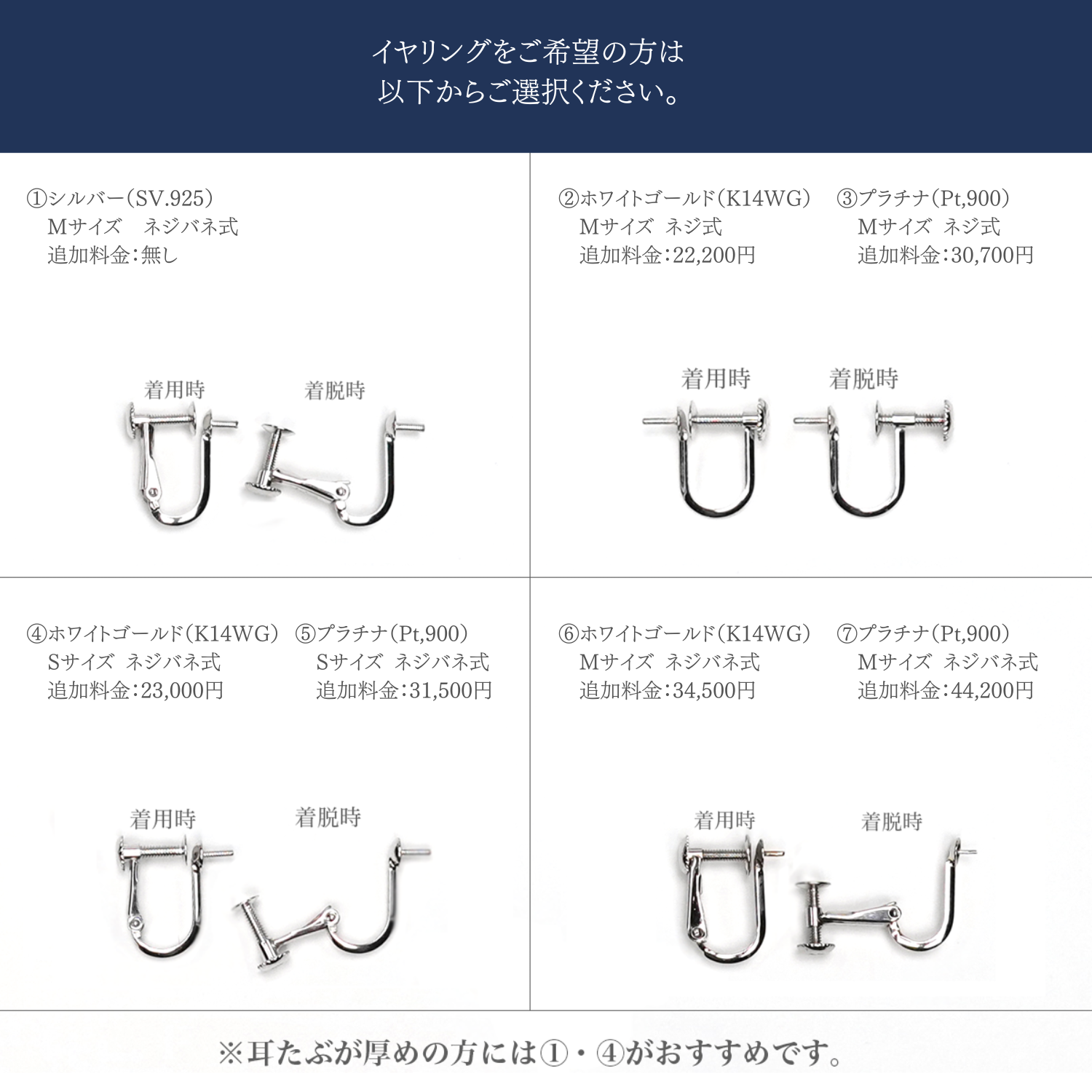 ③プラチナ(Pt,900)Mサイズ ネジ式:+30,700円