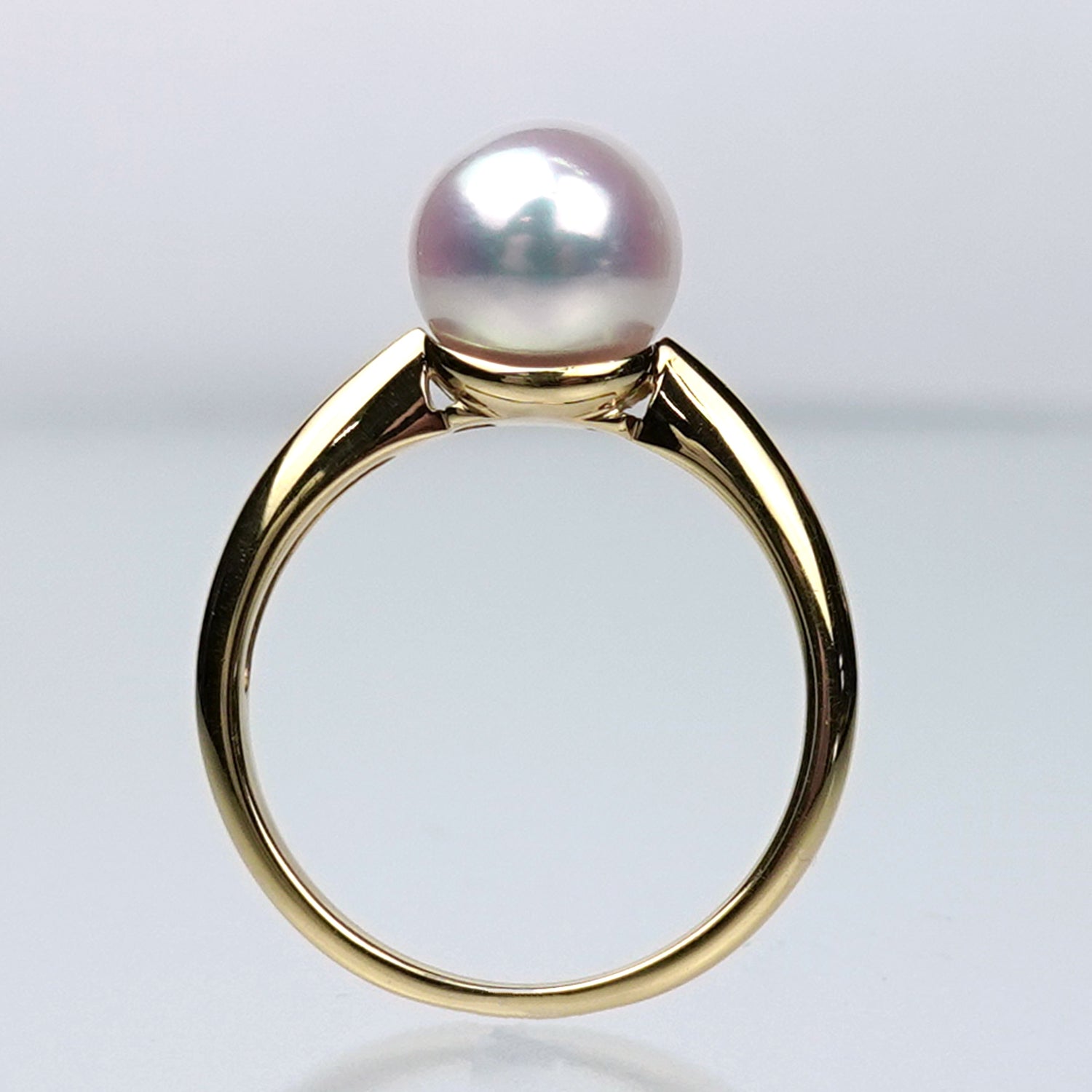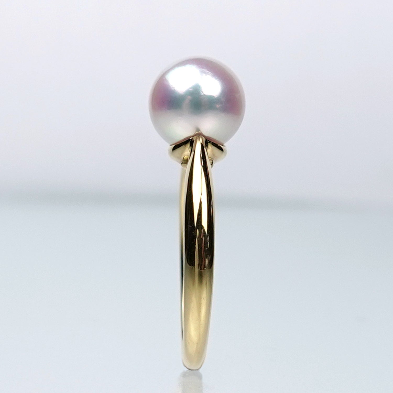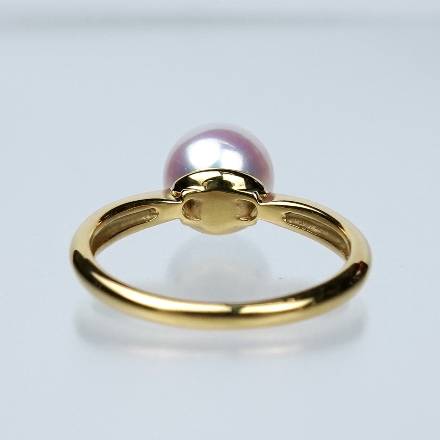 パールリング ピンク系の最高の色・照りの真珠(花珠クラス)を使ったシンプルで上品なデザインの指輪 RP-H-8.0mm-K18YG