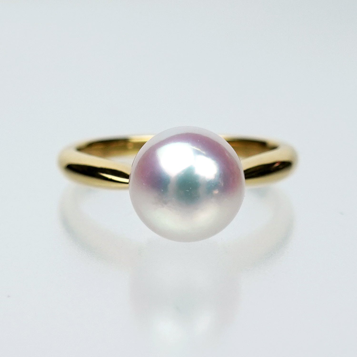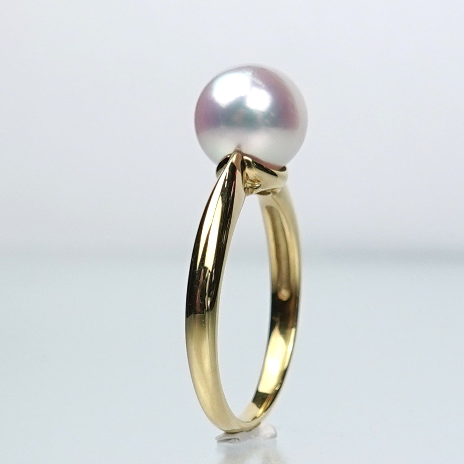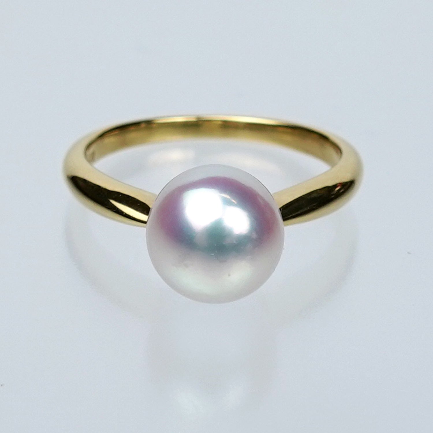 パールリング ピンク系の最高の色・照りの真珠(花珠クラス)を使ったシンプルで上品なデザインの指輪 RP-H-8.0mm-K18YG