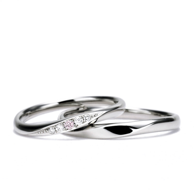 結婚指輪ペア 緩やかなウェーブデザインとアクセントのピンクダイヤが特徴的 高強度なハードプラチナを使用 MpODP01-Lp1M