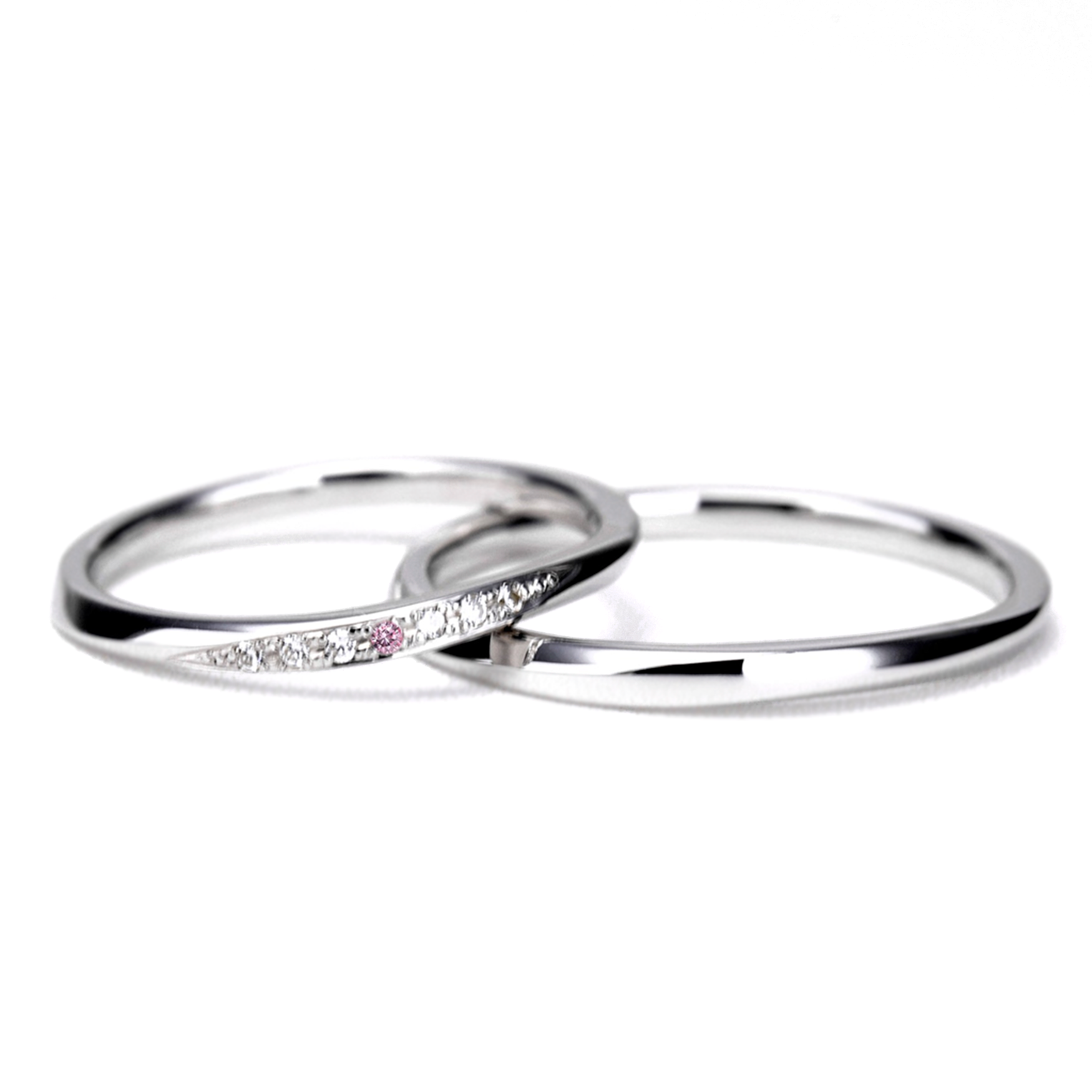 結婚指輪ペア 女性用に希少なピンクダイヤを使用した細身のプラチナ製マリッジリング 緩やかなウェーブデザイン MpTRM211p-212-Pt