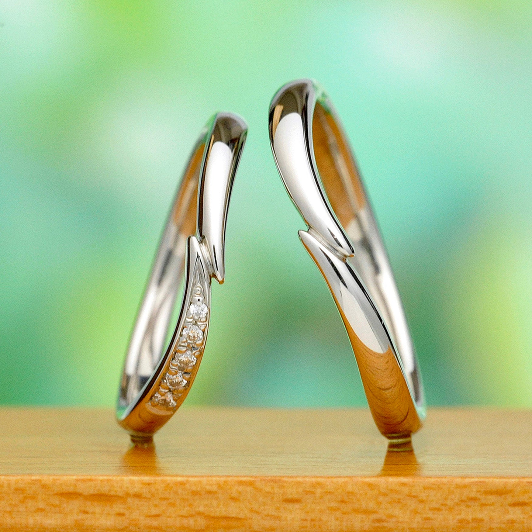 結婚指輪ペア【月華〜Gekka〜】 手を取り合ったようなウェーブデザインの指輪 MpKK02-Pt900