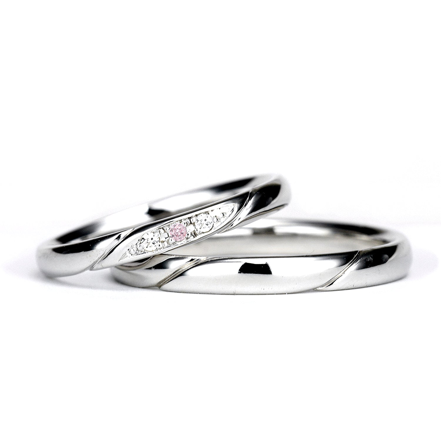 女性用にはピンクダイヤを使用したストレートデザインのリング