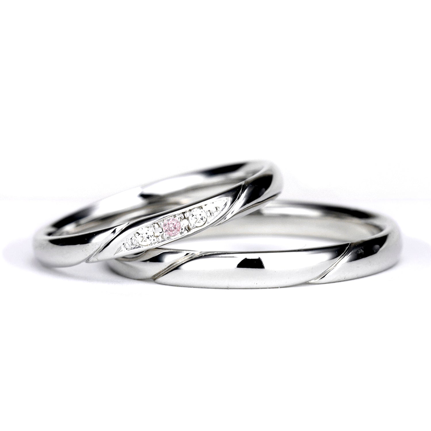 結婚指輪ペア 女性用にはピンクダイヤを使用したストレートデザインのリング MpO11DAp1hO13-Pt950H