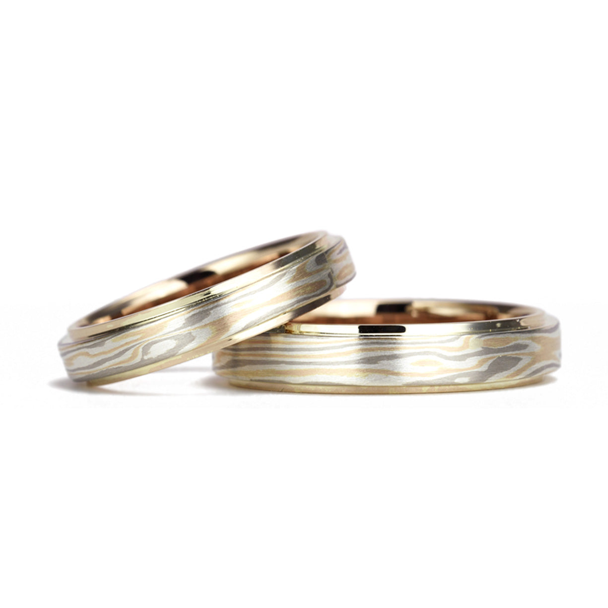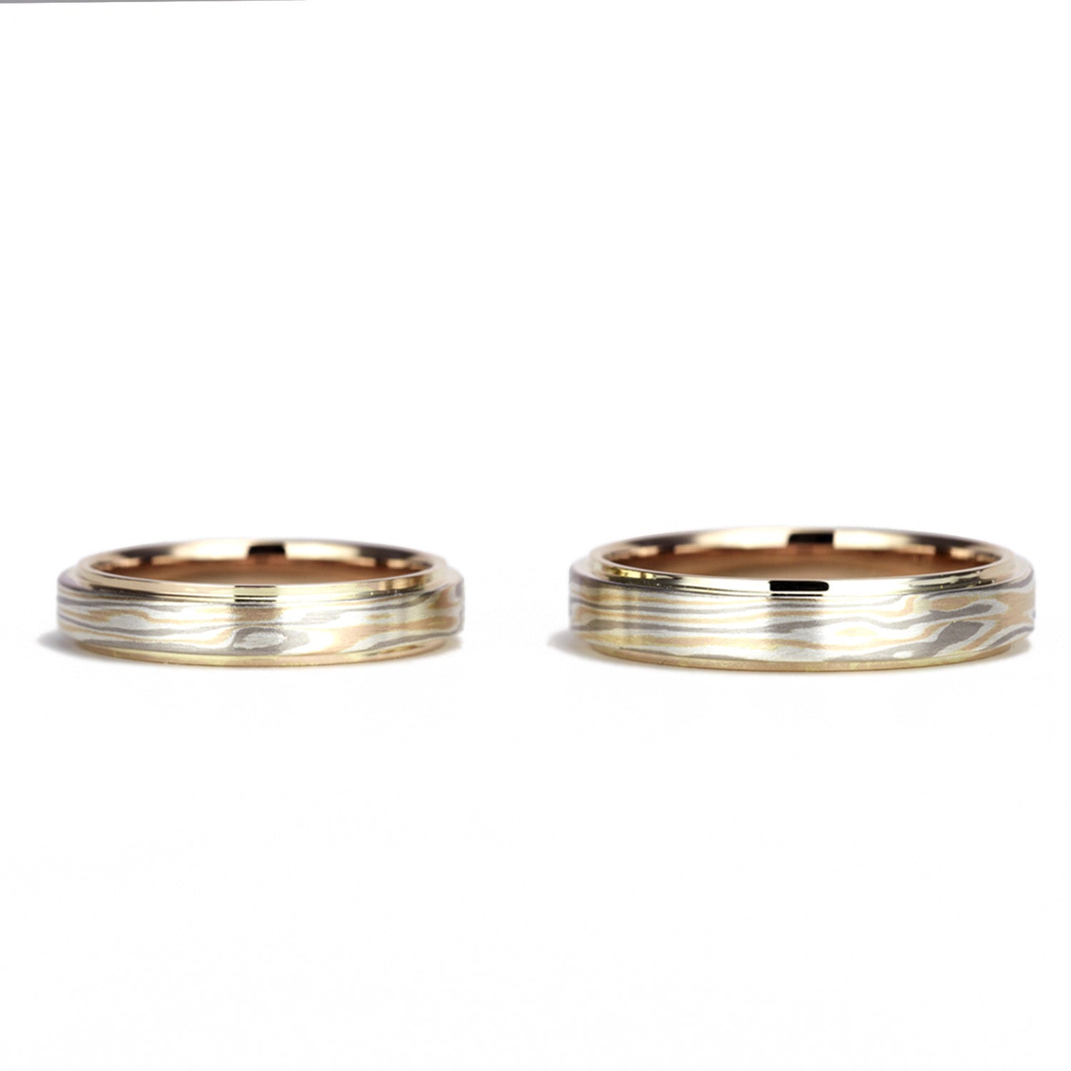【杢目金:もくめがね】結婚指輪ペア 世界に1つのだけの結婚指輪 日本独自の伝統工芸技法で手作り MpTHS01-DT-PG-S25-L30