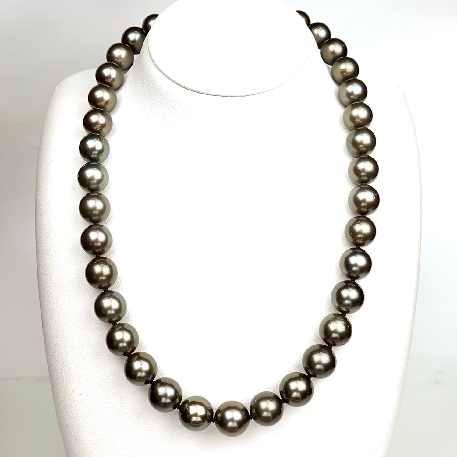 【限定特価】黒蝶真珠ネックレス ラウンド~セミラウンド系で照りの良い真珠 KC-N-11.0〜12.7mm-OK58-19
