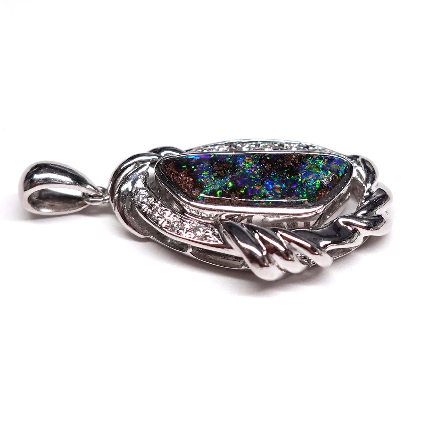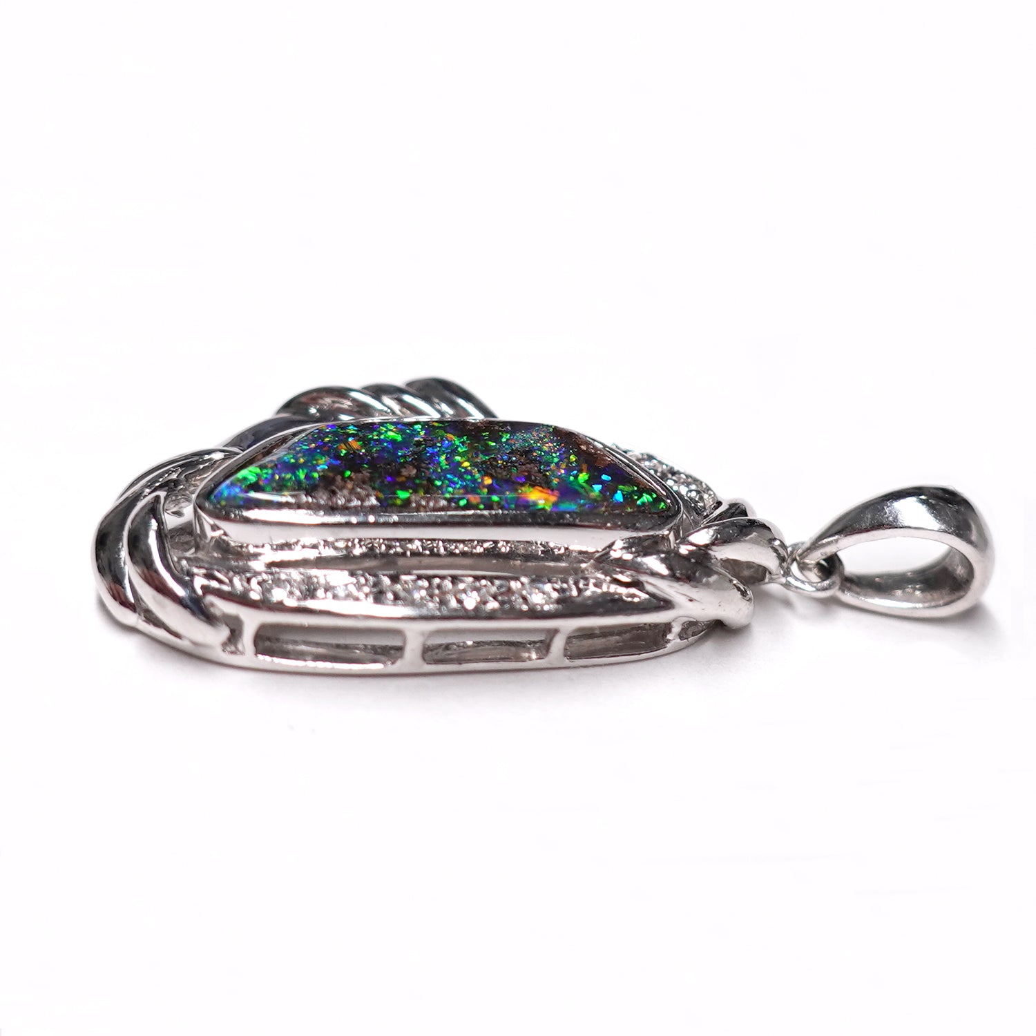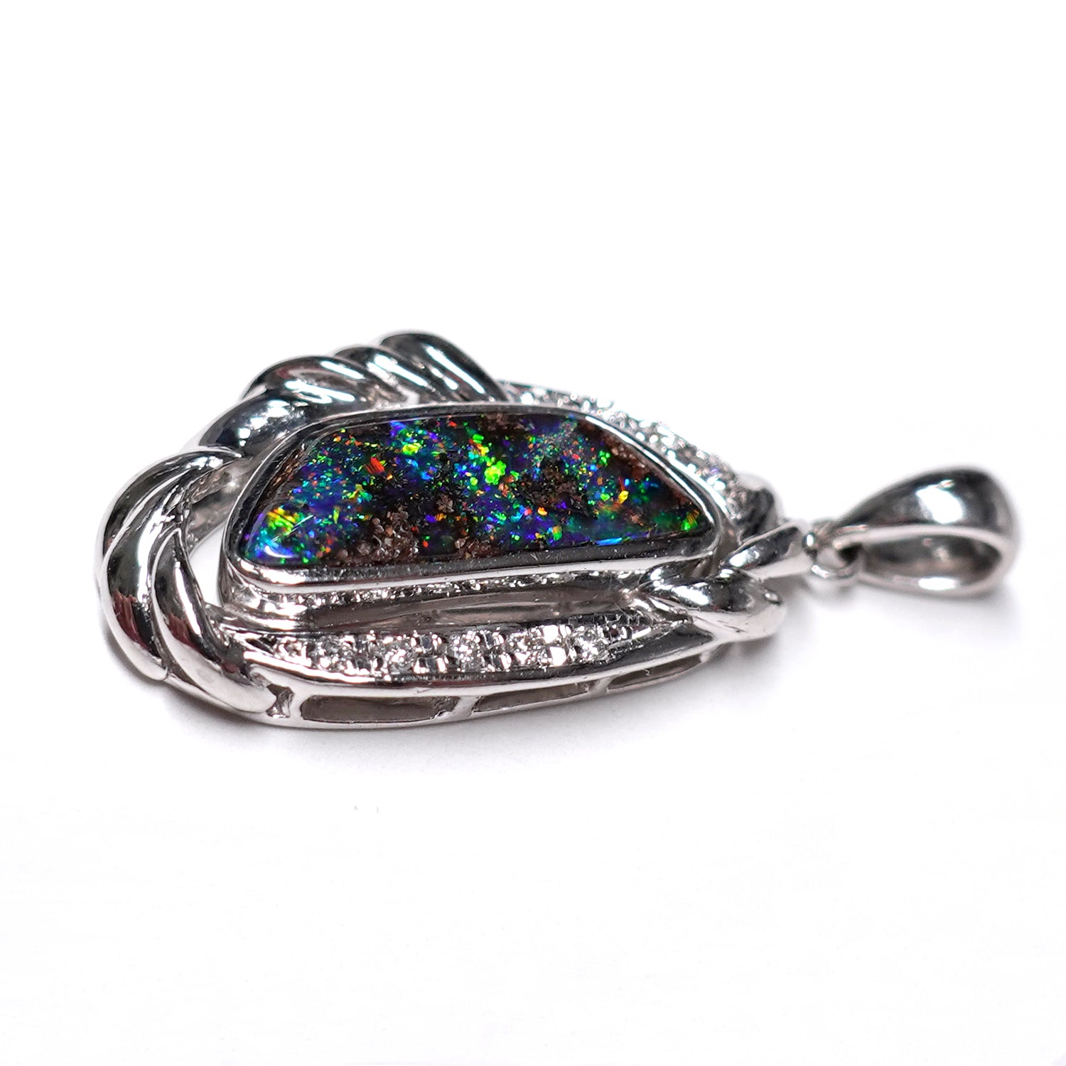 ボルダーオパールペンダントトップ プラチナをたっぷり使った高級品、遊色部分が登り龍に見えます(Pt.900) KP21079