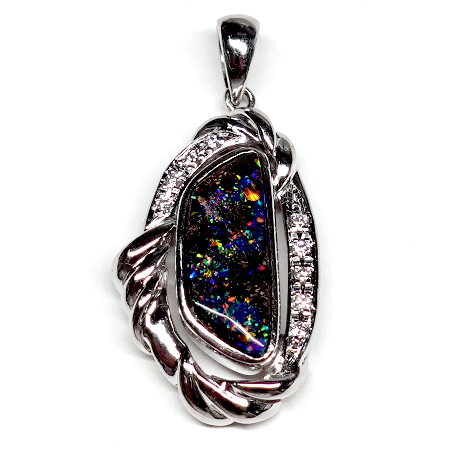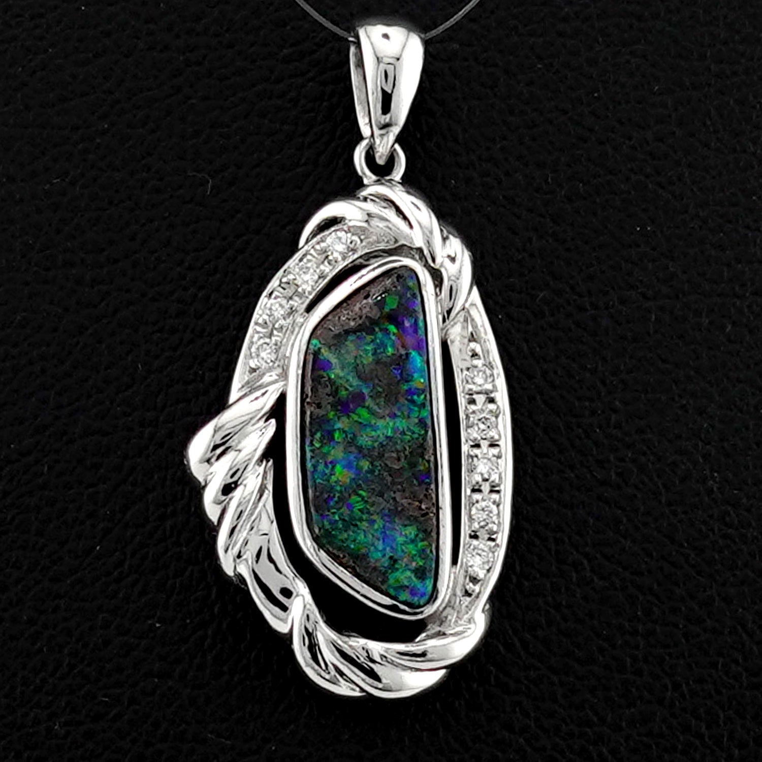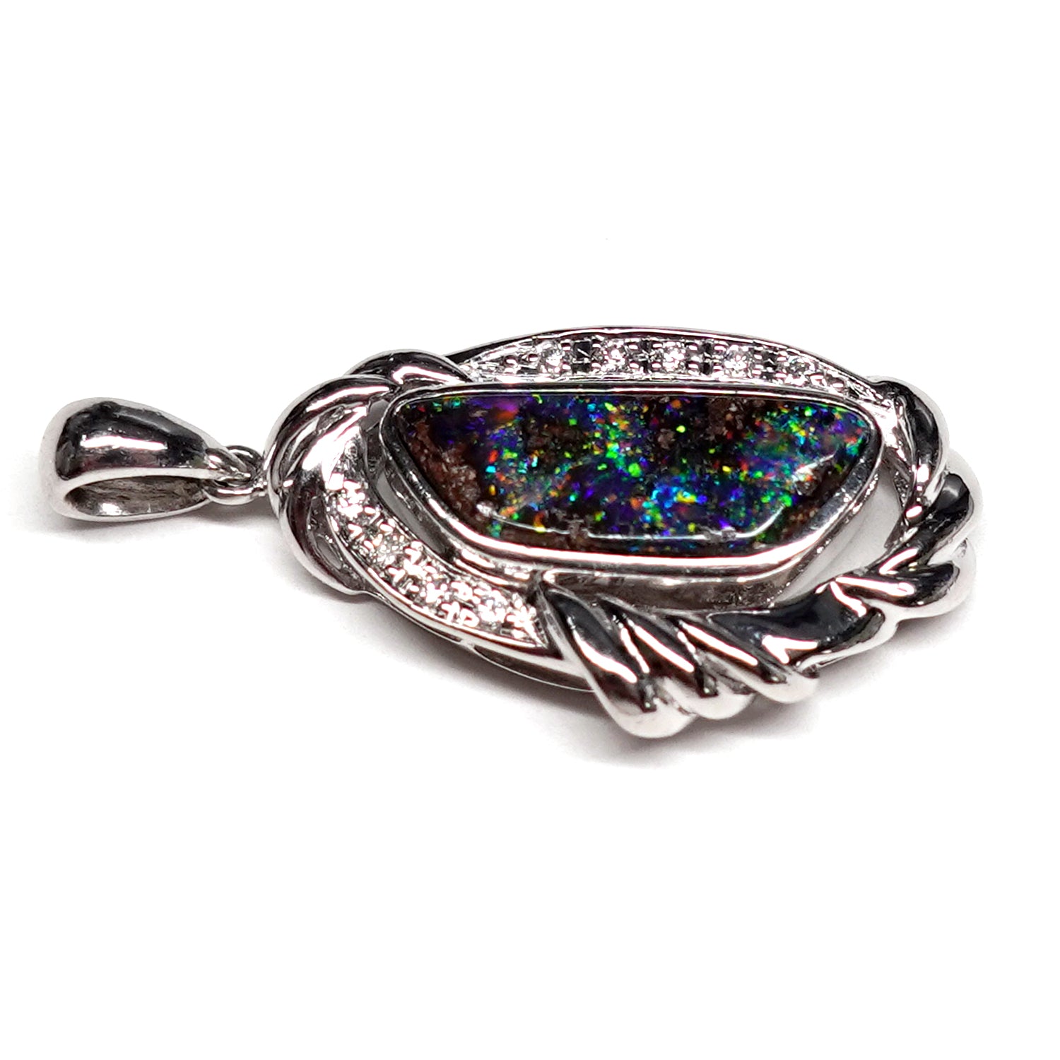 ボルダーオパールペンダントトップ プラチナをたっぷり使った高級品、遊色部分が登り龍に見えます(Pt.900) KP21079